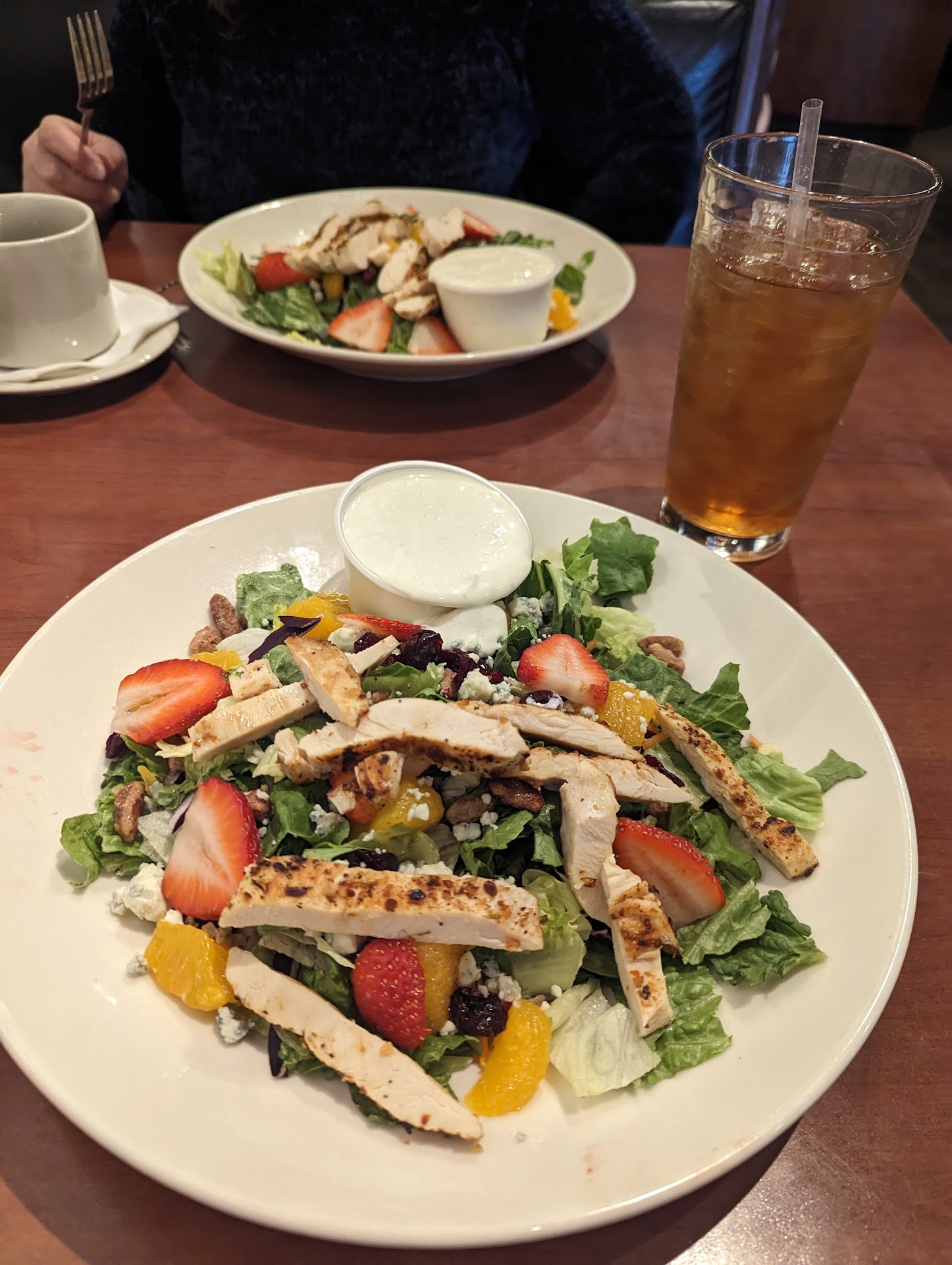 Only later did the manager come with the salad after the waitress came back again to refill our drinks. I said to the manager that we were both unsatisfied with the service. She took my husband's soup to the kitchen and added a cup of soup to the old bowl and did not give a new bowl of soup *(I only found this out later when I asked him how he found out that the manager only added a cup of soup-she told him). I was shocked that she did that and said that to him. She is the manager of the restaurant and that was unprofessional.
