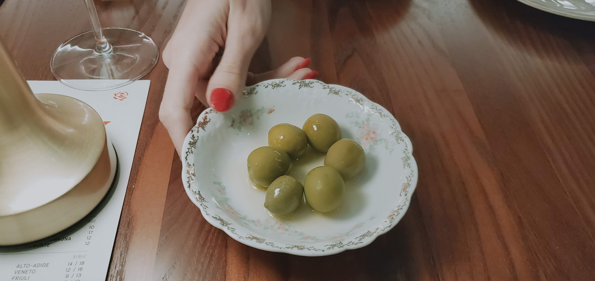 Castelvetrano olive As a fine dining restaurant, I wish they present little tongs to the guest who orders olives. Some people don't like picking olive with their hand and it's a little hard to use a fork to get the olive has a pit.