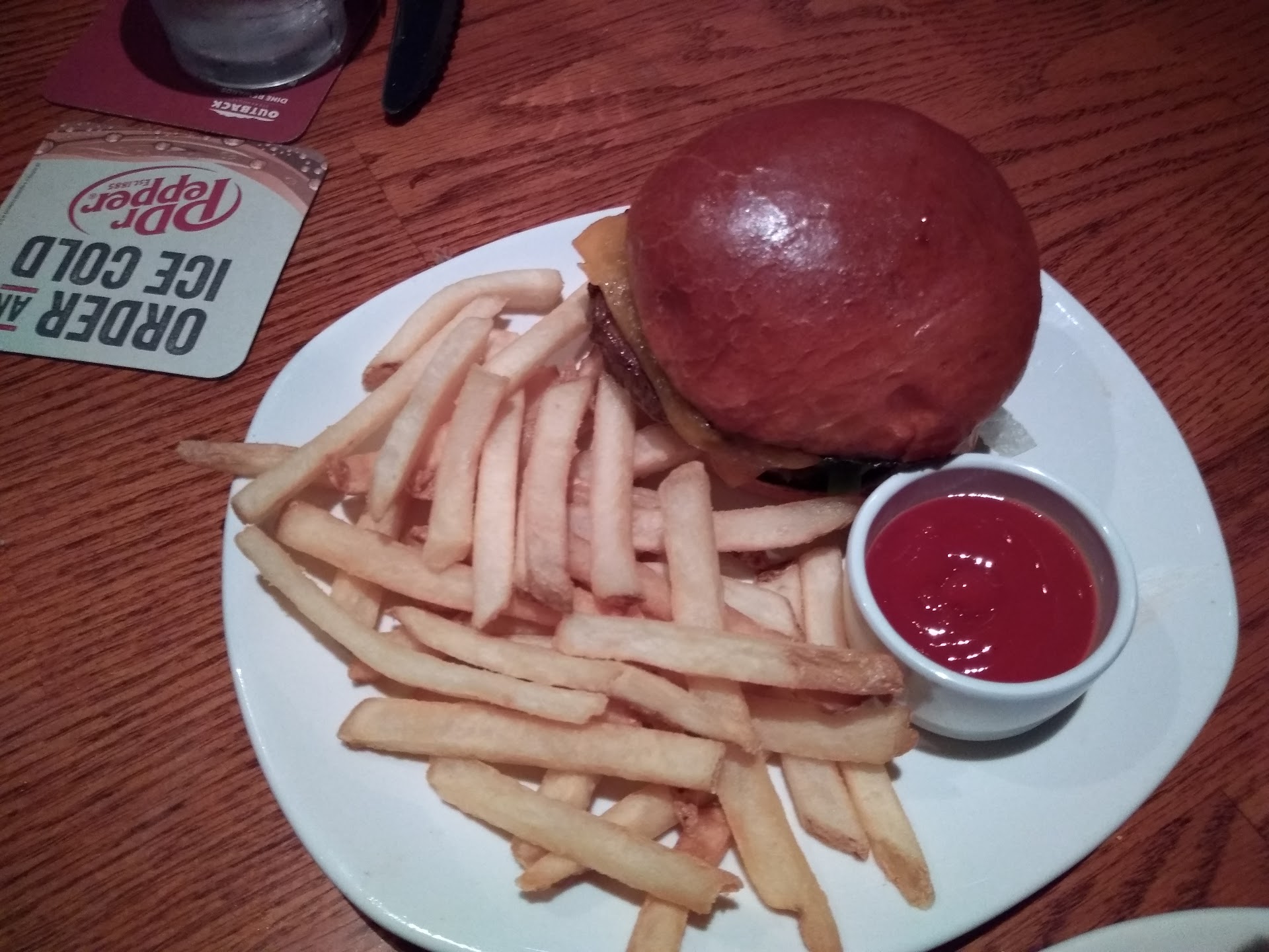 I want to start this review by saying I love outback, just not this location and if you are wondering about going to this one, do yourself a favor and just drive an extra 15 minutes to the one on north peters road. I have never left a one star review before so that being said I am going to go into great detail on why you might wanna think twice before going to this location. First things first HEALTH AND CLEANLINESS. Out of all the things in a restaurant the main thing you don't want there to be issues with is there cleanliness. foods not great? Too bad. Bad service? Better luck next time. right? But food poisoning and sick stomachs are no joke which is why I believe it's the most important criteria. So first off the floor was super sticky, not like a little, but like really really sticky. Also the table was sticky too which I thought was way worse than the floor because you aren't eating off the floor š after sitting there noticing these things I started looking around the restaurant and I noticed something gross ( I work in maintenance so it's my job to notice thingsš) in the back corner above a table on the black ceiling tiles there was orange stains which i thought could either be splattered food, or worse and more probable, Mold 𤮠maybe it was nothing but either way it looked disgusting and that paired with all the stickyness I was loosing my appetite quickly. The final straw was when our bread got brought out, the man who brought out my bread honestly smelled like he hadn't showered in weeks and he worked in the back, he was not a waiter, also the bread was old and bad tasting. All these things combined I started thinking, if this is how the front looks where costumers eat and this is how the staff present themselves who knows how disgusting the back is. I was not about to risk food poisoning so I can't really say how the food is for obvious reasonsš now they do have a good health score so I geuss they clean up good enough when the health man is in town lol I'm not too sure how all that works. But that's my honest review, so don't risk it just drive to the other one. I gave that one a five...