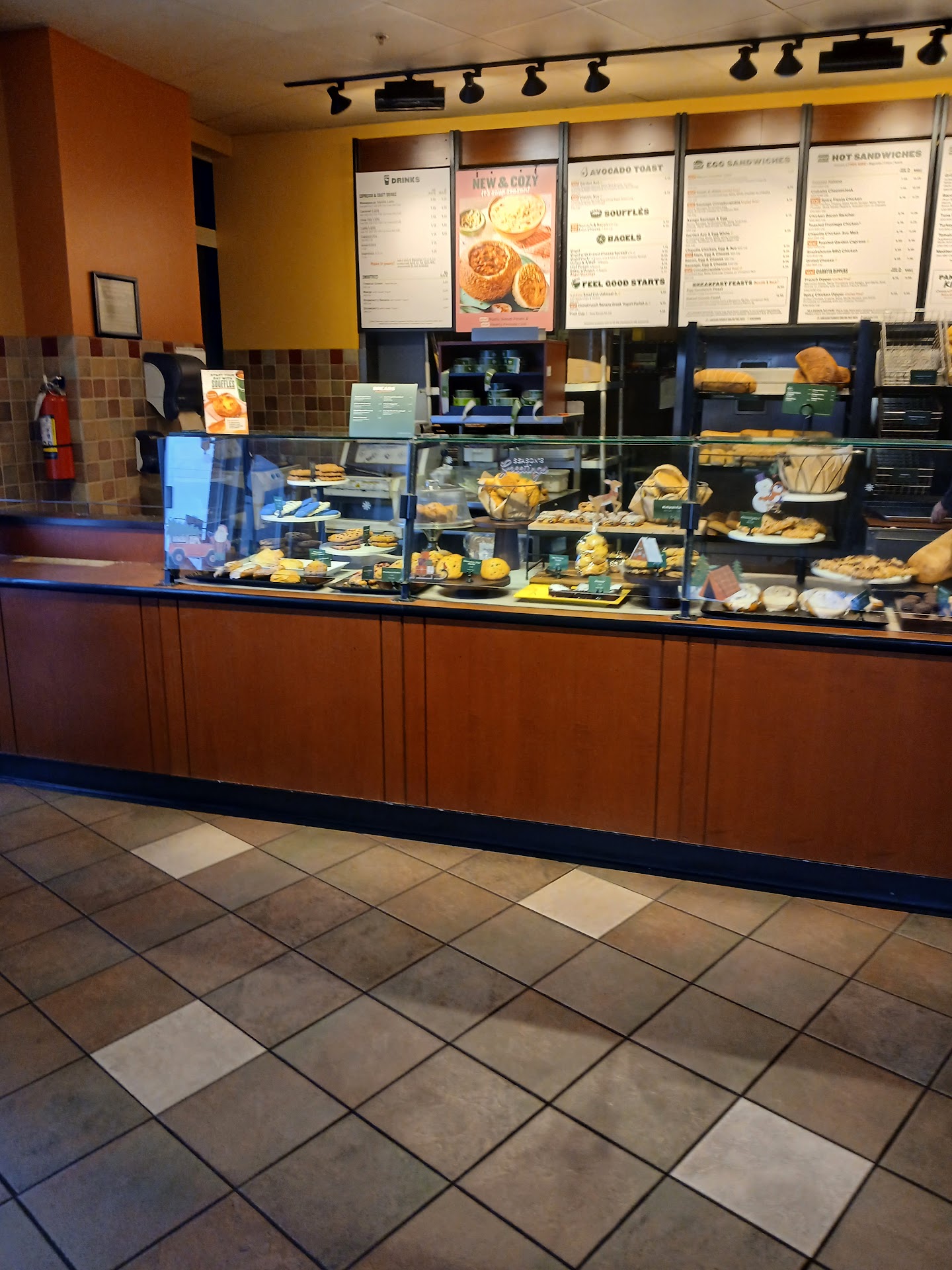 I deduct one star for location. You take your very life in your hands getting in and out of the tiny parking lot of the little strip mall in which this Panera sits. Visibility is poor, but this doesn't seem to dissuade the (apparently) paranormally-gifted drivers, who barrel around blind corners without checking first to see if cars or pedestrian might be approaching from the other direction. Apparently, these drivers labor under the delusion they possess a sixth sense enabling them to see through time and around solid objects. I can assure them that empirical data has proven otherwise.