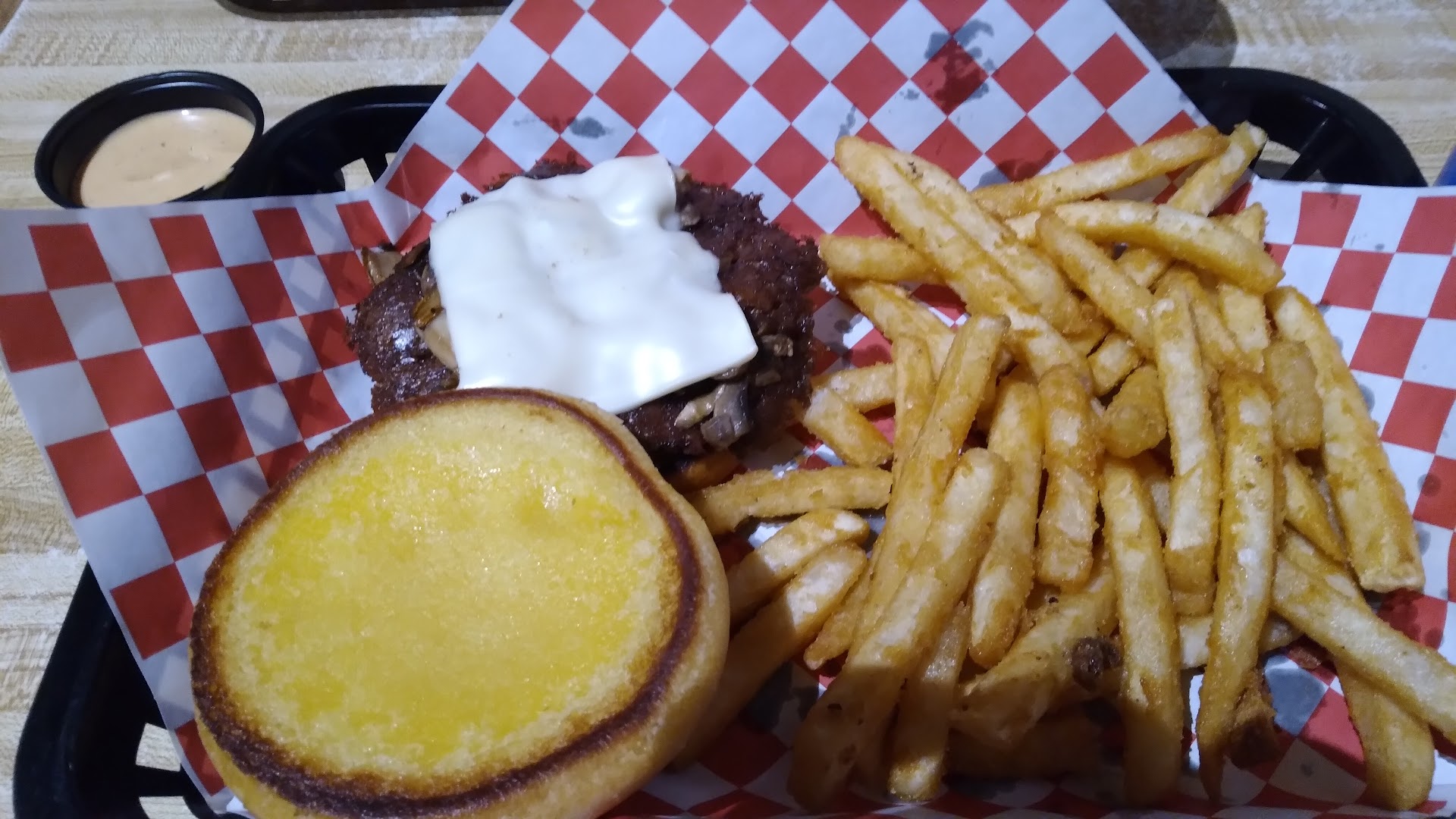 Ā Ā Ā Read moreHeard about this place recently and figured I'd give it a fair shot. Tried the mushroom and Swiss burger and it was quite decent, but not the best I've had in this area, especially for the higher than average prices. The fries have some kind of flavor to them, but not enough for me, and they were rather greasy. The smash sauce was really good though, and I would recommend anyone who comes through to give it a shot. Service was fairly quick so no complaints there. I only sat in the main dining area and the atmosphere was rather lacking, but I noticed a large section for children to play in, so it may be a draw...
