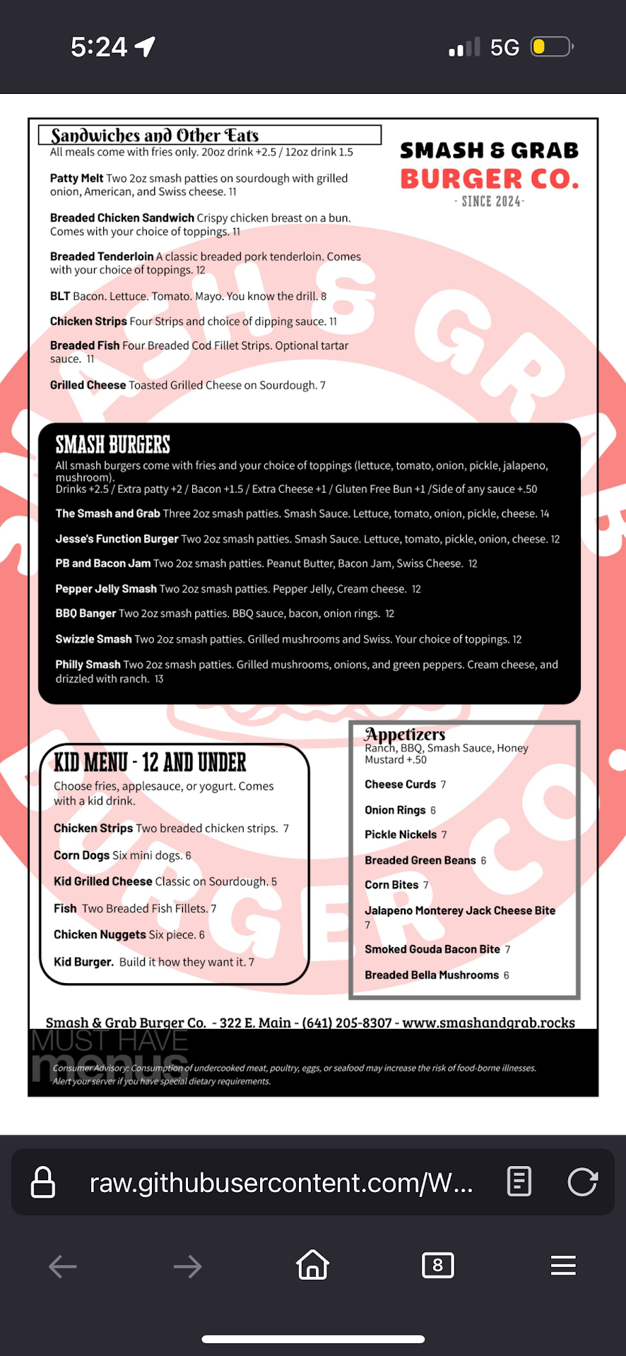 My wife and I love to try new small businesses and we saw Smash and Grab on TikTok and figured we would try it out. We started with onion rings⦠they were delicious! Crispy batter and the onion snapped off when bitten which is a š in my book.