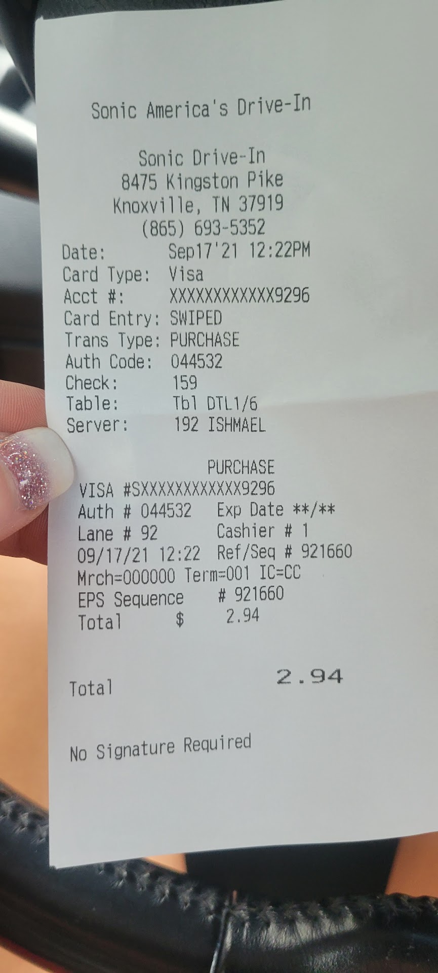 Read moreI'm so disappointed in this Sonic. Unfortunate I can't give zero stars. Once every few weeks, I'll drive through a Sonic and grab a plain old vanilla ice cream cone. No frills, it's just what I like. Well, I went through this location today, and I was in complete shock. The worker handed me my cone out the window and I immediately paused. I wish I had thought to take a picture. No where near consistent with Sonic's normal cone. It was pitiful looking. Before grabbing the cone, I said "That's a sad looking ice cream, don't you think?" And her response... "It's a dollar ice cream cone." My mouth must have hit the floor; I was speechless. Before I knew it, the cone was in my hand, she had my money, and I was driving off in shock of her response. What does it matter the cost? I didn't see "Sad Looking Cone - $1" and "Proper Cone - $2" on the menu. If I did, I would have ordered the product I prefer. I didn't come there and get the cone because it was cheap, I came because I like Sonic cones, even if they were $2 - $3... So, I ask the person working there, if it were a $2 or $3 cone, would you have put in the extra dollar or two of effort to make a decent cone? I'm guessing probably not. It wasn't even like it was a busy time... one other person in the drive through getting one blast, and I'd guess 3 cars in the drive-in. If you put so little effort into making a simple product like a cone, I'd hate to see how a larger food order is handled. So sad this location gets such poor reviews and ratings on Yelp and Google, but after the service and product I received, I can see why. A manager needs to stay on top of making sure this location hands quality food out the window and quality service out of their mouths. Top notch attitude and words can clean up product flaws easily and quickly. I won't make a threat like "I'll never be back," but you better believe I won't drive away without a quality product...