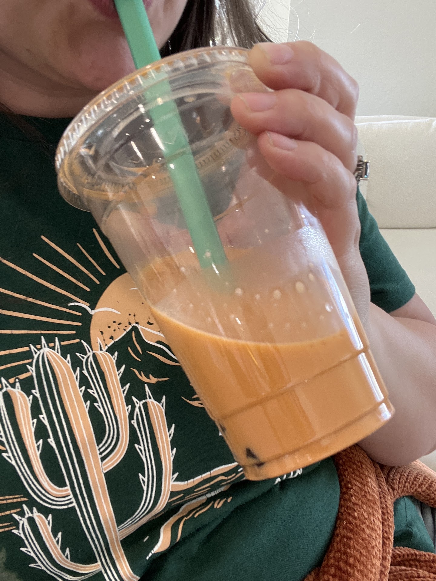 Read moreThe modern aesthetic, is very calming and pleasant. The shops beautiful and relaxing atmosphere makes the desire to stay and enjoy the amazing cold and hot drinks they sell. I personally had an iced boba thai tea, which i found refreshing and delicious, ( i loved the tapioca pearls in my drink, creating the illusion of a snack and a drink ) I also had the chocolate croissant which melted in my mouth and tasted so good (i am a sweets person)! The owners were so friendly, creating a relaxing environment. I highly recommend coming and checking out this Quaint...