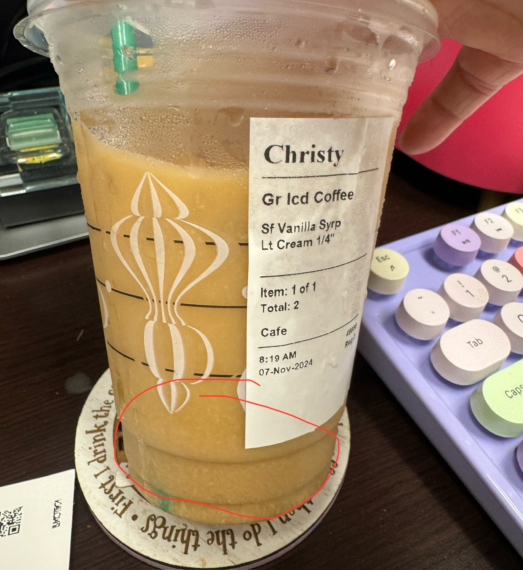 Just stopped in for some coffee and a bite to eat. The person who took our order was pleasant and very friendly. The barista who made our order was not however. We ordered 2 drinks (nitro cold brew w/ sweet cream, nitro cold brew w/extra sweet cream). After her first pour she sat the coffee on the counter and I asked if it was the one with extra sweet cream. She casually ignored me and walked away. When she started pouring the second cup I asked her if it was the one with extra sweet cream. She looked up and with a decent amount of what appeared to be frustrated attitude said; it is on the label, you can just read it. So I looked at the label with all of its anacronyms and asked her, what if I canât read it? So she said âWell I donât know what to tell youâ, and walked off.