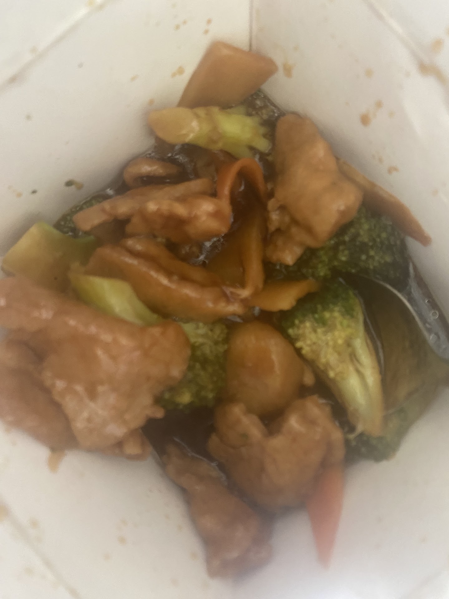 The Cashew chicken came in a brown sauce with a side of rice and the flavor was better than we expected and we enjoyed it.
