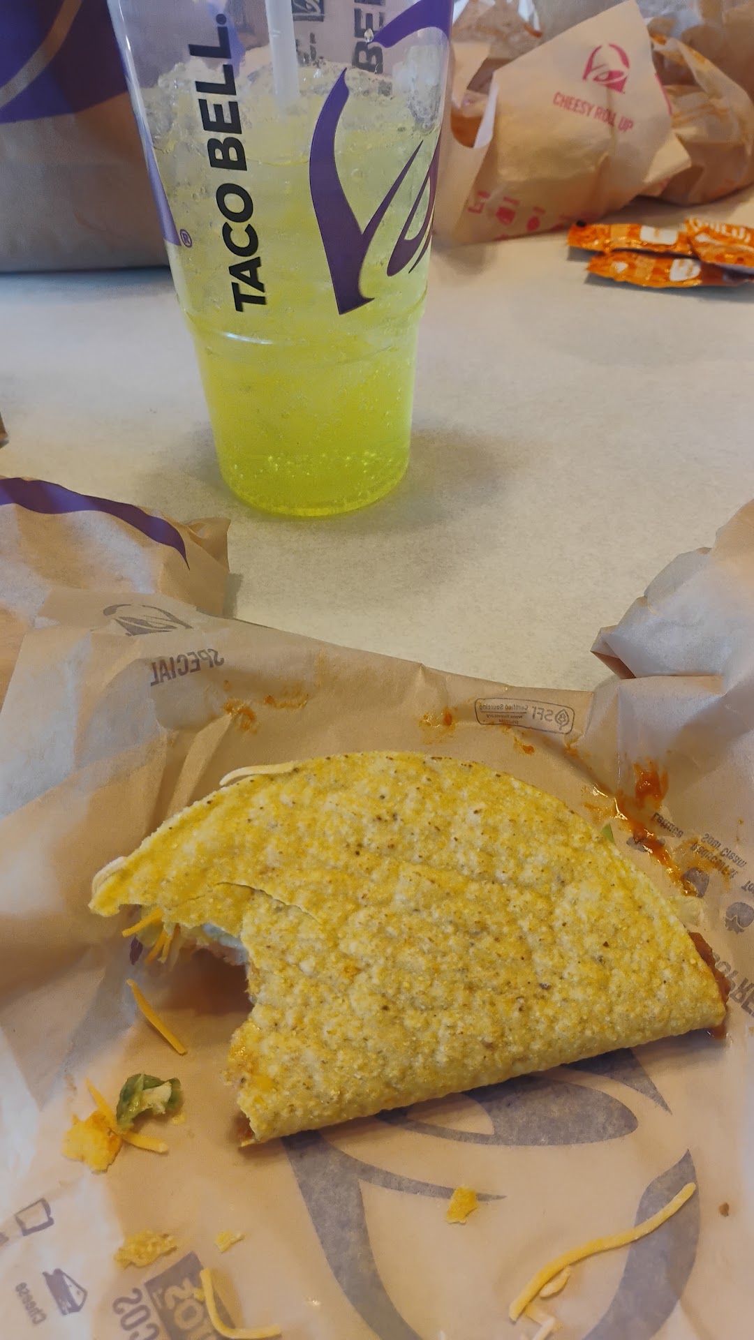Read moreNormally love Taco Bell! This time the woman in the drive thru balled up my quesadillas and shoved them in a bag. Not the normal wide bag, but the tiny one meant for burritos. As a result the quesadillas were falling apart and sticking to the paper making it inedible. I went inside to get a replacement and the lady at the counter was super nice and took care of it. However when she brought the mistake to the drive-thru lady’s attention, the lady in the drive thru gave attitude and just couldn’t accept that she made a mistake. It really wasn’t that big of a deal; it was the attitude that got me. She may not have been talking to me but I heard everything she said. I got the replacement food and it was just thrown on the counter without a word. I wasn’t even mad about it, just wanted it corrected. I don’t know if that girl was just having a bad day or what but she needs training for sure. Handled terribly. I wish I knew the woman’s name at the counter though because...