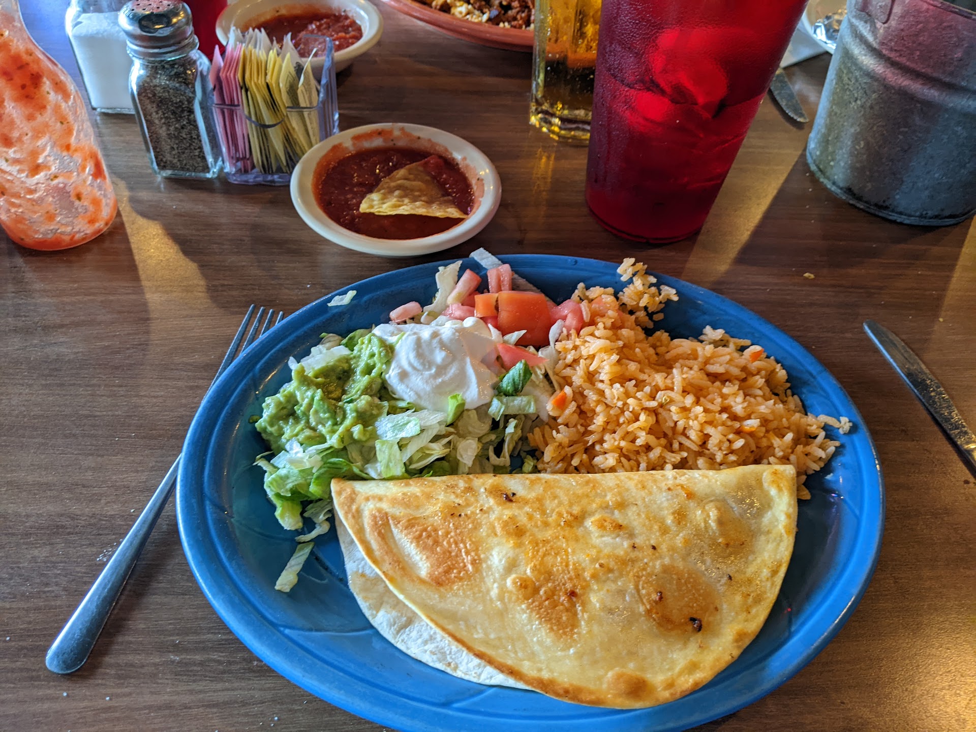 We walked in and immediately got seated which is great. But the host just walked us to the table, set the menus down, and walked away. Didn't say a word or anything. The table he sat us at was in direct sunlight with the door to the patio and we had to ask a server if we could sit somewhere else. Our server was good. Brought the drinks quickly. But The Horchata was very watered down. Then my toddler accidentally spilled his drink on the floor, we informed the server as soon as it happened, but it was never even attempted to be cleaned up. At least towels could have been thrown down. But nothing. When we ordered the food it came out quick. And I mean like less than 5 mins. Which usually is good except that it calls for concern when you order a Molcajete with 3 meats, steak tacos and two chicken and cheese quesadillas. Both quesadillas were only cheese, one of which the cheese wasn't even melted and the tortilla was cold. The other was cooked right but still no chicken. It was fixed right and back out quickly. No big deal on that. But the chicken was very dry and tasted as if it has been cooked early that day and set in a warmer. Then we were missing the tortillas for the molcajete, which my Mexican husband wasn't happy about and we had to wait a little while to even see the server to get that. All in all I dont think we'll be back. The food was mediocre, but the all around service definitely could have...