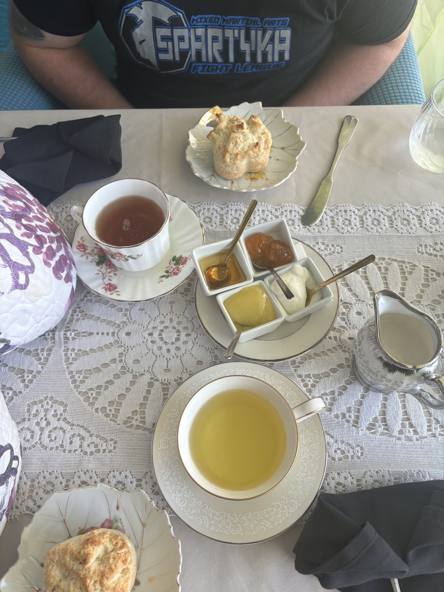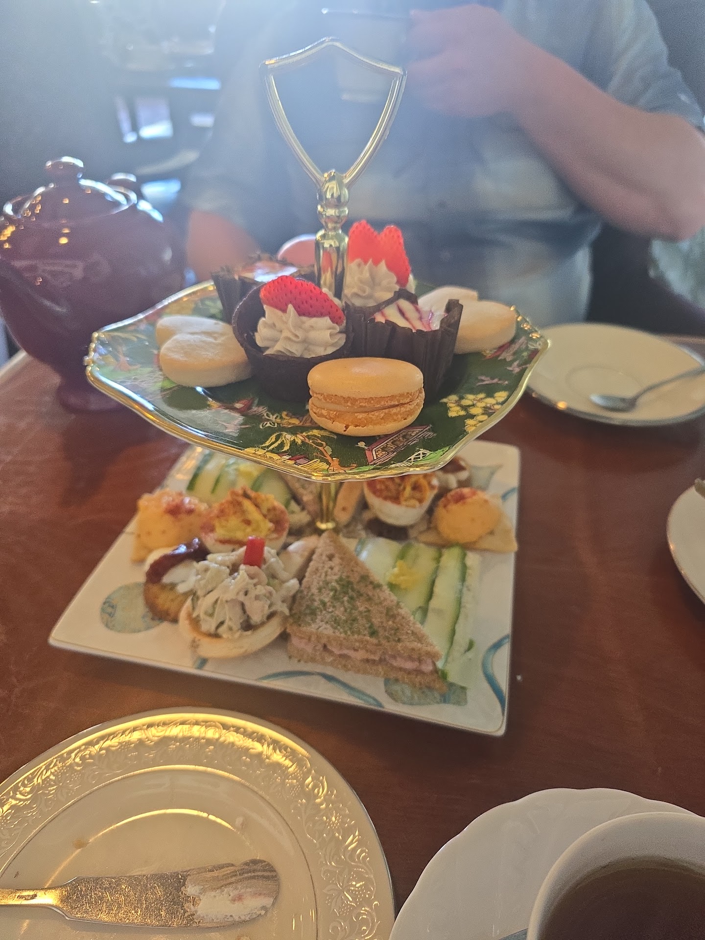 Read moreI had one of the worst dining experiences I’ve ever had at this tea room and it unfortunately happened on my birthday. From the moment we arrived, the service was chaotic. Our waitress seemed completely scatterbrained and disappeared shortly after seating us, claiming an “emergency.” No one even noticed our table was unattended for over 30 minutes, until we flagged someone down for help. Once we did, our new waitress had no idea what we even ordered. When our tea finally arrived after a 45 min wait, it was cold. Not lukewarm, not room temp. COLD. As if it had been sitting out for ages. Another 30 minutes later, we received what they called a “cheese and fruit tray,” which was laughable: one small triangle of brie, three grapes, and two crackers. Almost 40 minutes after that, the rest of the food showed up: two finger sandwiches (one tuna, one chicken), two tiny cupcakes, and two macaroons. When I inquired about what is taking so long, the response was “we have to make things from scratch”. WHAT in the world could warrant something taking that long? For the tea experience this and the price we paid, this was an absolute joke. The food itself was bland, uninspired, and honestly disgusting. To make matters worse, the tea policy is bizarre. At most tea rooms, you get unlimited tea served in small pots. Here? One pot per person. One member of our group did get the unlimited tea option, and the staff made them feel completely uncomfortable about it by repeatedly asking, “Are you planning to share?” and “Are you sure? Because you’re not supposed to.” It was rude, unnecessary, and made the whole experience feel awkward. In over two hours, not one staff member checked in to ask how things were, offer a refill, or make sure we were doing okay. There were only two other guests in the whole place..how is it possible the service was this disorganized? This was an absolute letdown. Not worth the money, not worth the time, and definitely not the experience I was hoping for. I will not be coming back, and I’ll be warning my friends and family to stay far away. What a complete disappointment! Listen to the other reviews saying the same thing about time, staff and food quality. I didn’t believe it and wish I didn’t spend 100+ dollars here. Waste of my...