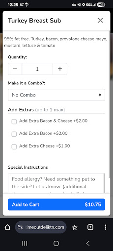 Read moreI placed an online order through their website for a turkey sandwich. The description on the website claims the sub comes with "Turkey, bacon, provolone cheese mayo, mustard, lettuce & tomato." The options further down included "extra bacon." The total price with fries and a drink was almost $22. When I got my sub there was no bacon, and when I asked for them to get me some to throw on it they refused, telling me it's not included. I showed them the description on their website and they still refused, telling me that I ordered incorrectly and that I was wrong, and giving me an attitude. I returned the sub (which anyway was soggy and not terribly appealing) for a refund and won't be returning.