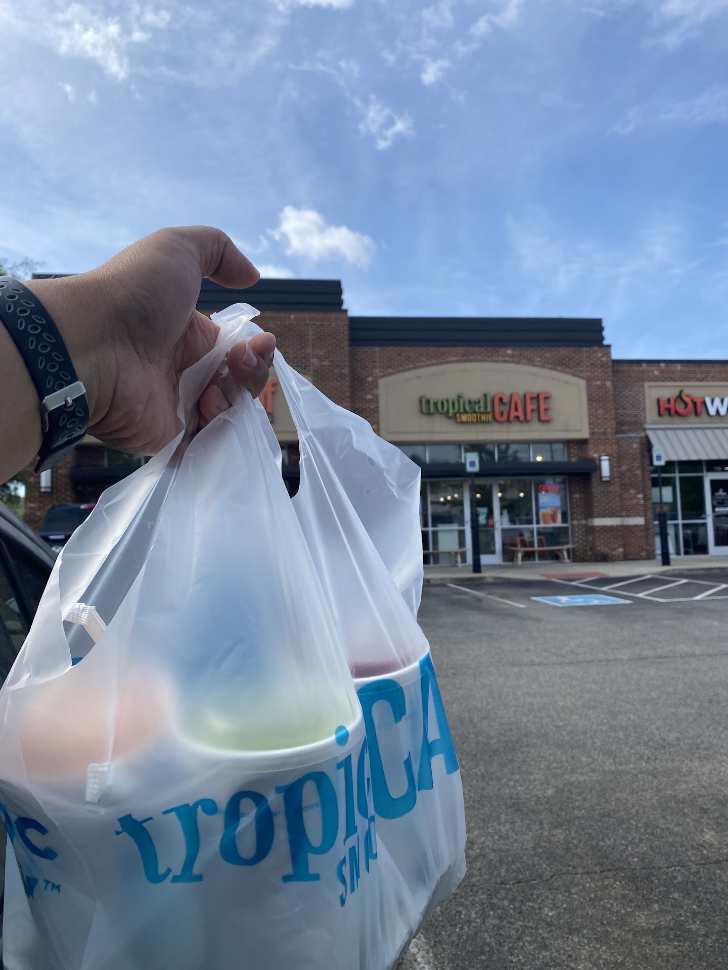 This was a horrible experience. First I went to drive through and waited 10 minutes with a car in front of me that no one had took his order. Second I backed up and went inside. There were two people that had placed orders for smoothies that had waited 20 minutes. Shakeita took my order and upon paying slammed cash register drawer and didn't even say thank you. Next after waiting about fifteen minutes. I just ordered one smoothie and I went to cash register to ask for my money back. One guy finally got his smoothie and Shakeita came up to the cash register and completely ignored me. The guy that received his order had ordered after the first lady. Anyway, I had to keep yelling miss for her to finally come to me and I told her I wanted my money back because I didn't have time to wait for 30 minutes for a smoothie. She started arguing with me and another lady came up front to refund my money. I stated Shakeita was hateful and Shakeita argued again with me. The other lady which I assume was a manager didn't say anything to Shakeita. I stated I didn't know how Shakeita still had a job there since she was soooo unfriendly and definitely not a person that should deal with customers and the lady that did the refund didn't say anything at all. This was a horrible visit and I will never go back again. I told the lady that was still waiting good luck. She was very upset as well and the guy that was waiting stated this was his first visit to Tropical Smoothie and he would never return as well. I would not recommend this...