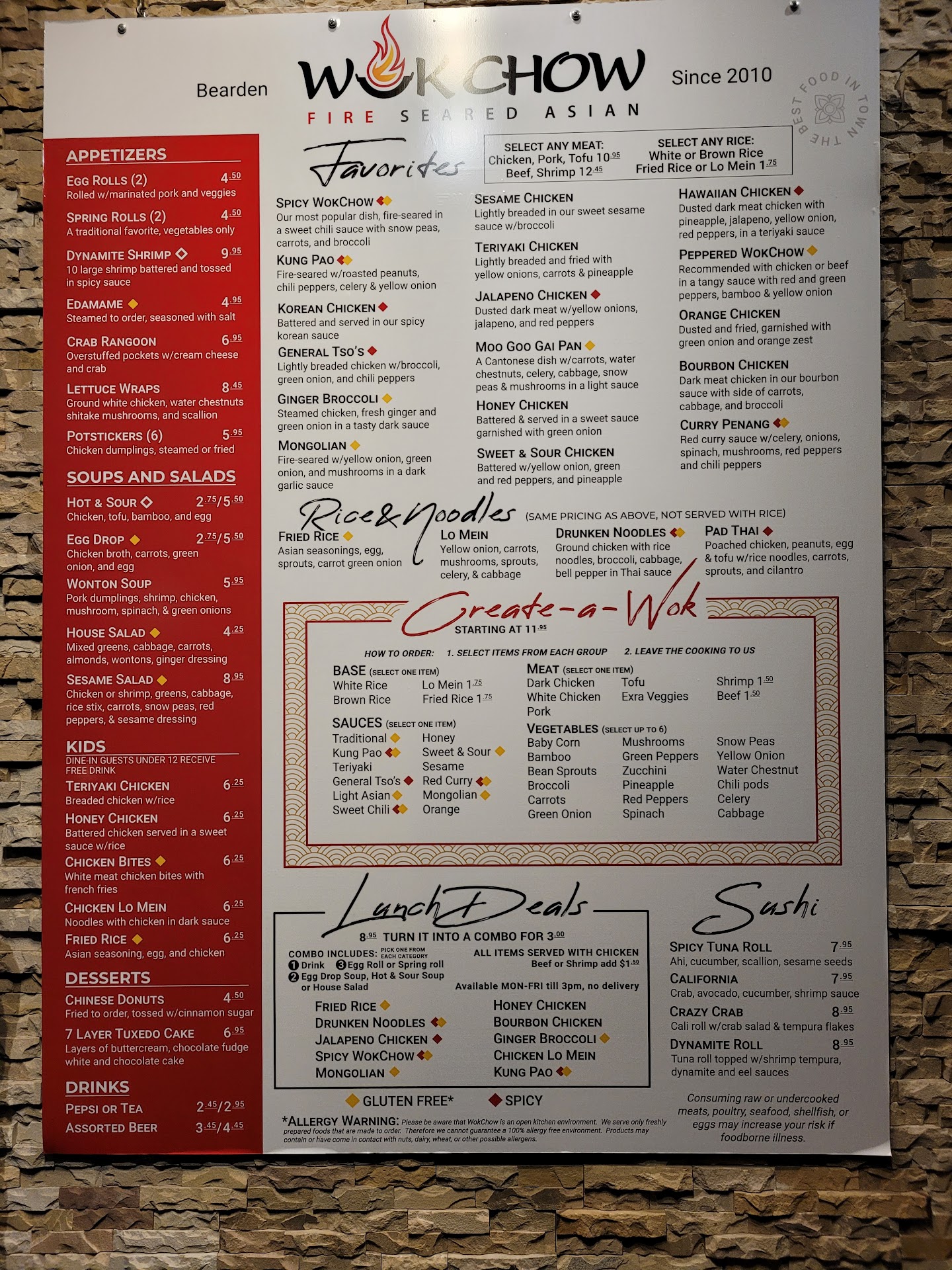 I found WokChow 1 yr ago on Find Me Gluten Free web site. I have biopsy proven Celiac and was looking for a more affordable place than PF Chang. WokChow was great for about 9 months and I have driven 40+ miles from home just to eat here because I didn't get sick from ingesting gluten. However, my last 3 visits I did get very sick from gluten and not only that the food was poorly prepared. The steamed rice was not fresh the flavor of lettuce wraps was bland and the spicy wokchow chicken was not good. Yesterday was my last visit.