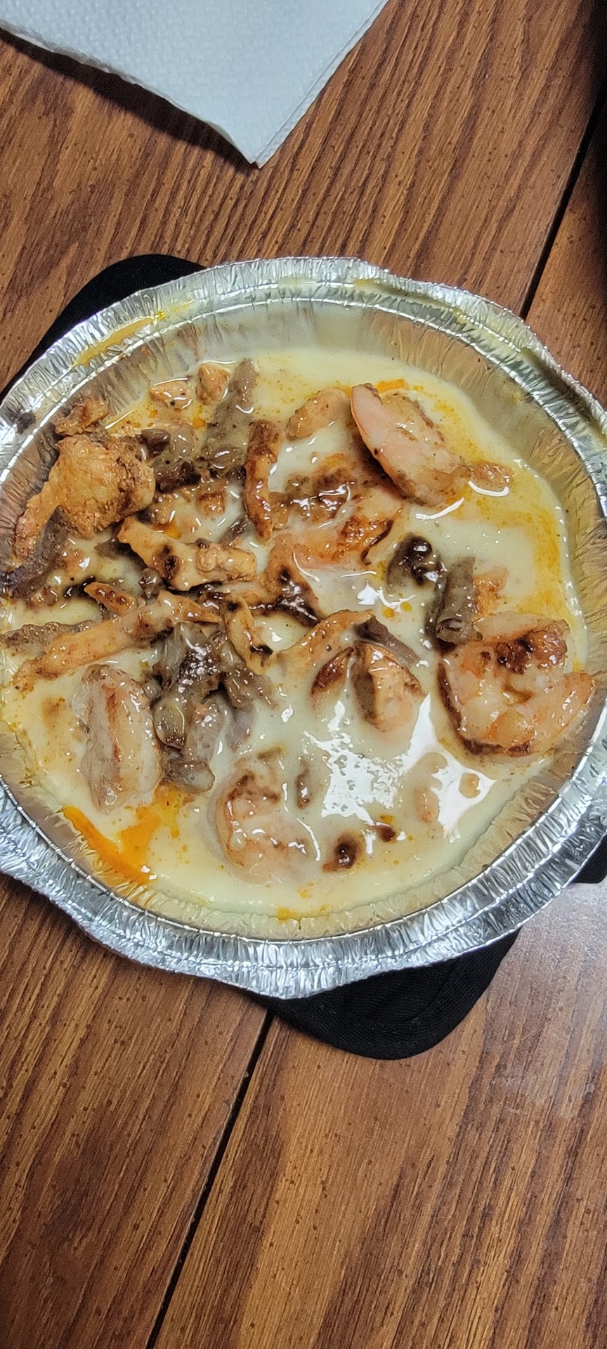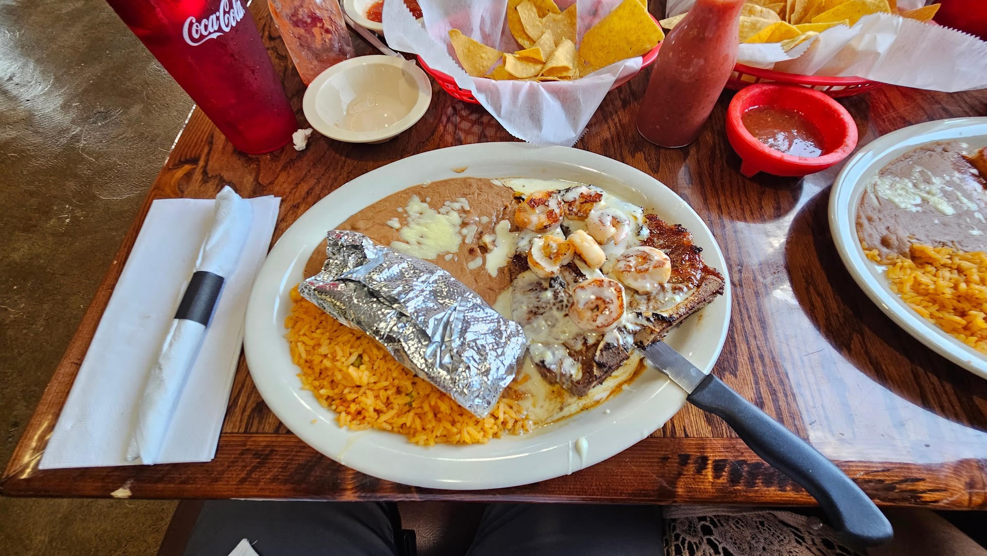Read moreOrdered a jumbo frozen mango margarita and the bandido dip. The jumbo margarita was the equivalent of a small at any other Mexican restaurant I've frequented. 9.99 for what looked like 12oz? The server brought me out a bean dip which I questioned and he said it was an appetizer and that they were preparing the bandido dip. Never brought it back out. Manager made his rounds and I asked him about it and they did finally bring me the bandido dip. I could see the misunderstanding except that I held up the menu and pointed to it when I ordered.. That "dip" is just a bunch of chicken, steak, and a few shrimp with a couple scoops of cheese in it. Nothing like the photo in menu. The amount of juice from the meat waters it down and it's just silly to call it a dip. It was uncomfortably warm in there. The ceiling fans appeared on low and the blinds were pulled up on the windows. It's over 90 degrees outside felt like 80 in there. When we went to cash out, the cashier was standing 15 feet away on his phone for a few minutes before he acknowledged us and cashed us out. Will say that everyone was nice and friendly. The restaurant salsa was heavy on garlic if you like that. Idk, new place wanted to try it but there's too many better restaurants in town to go...