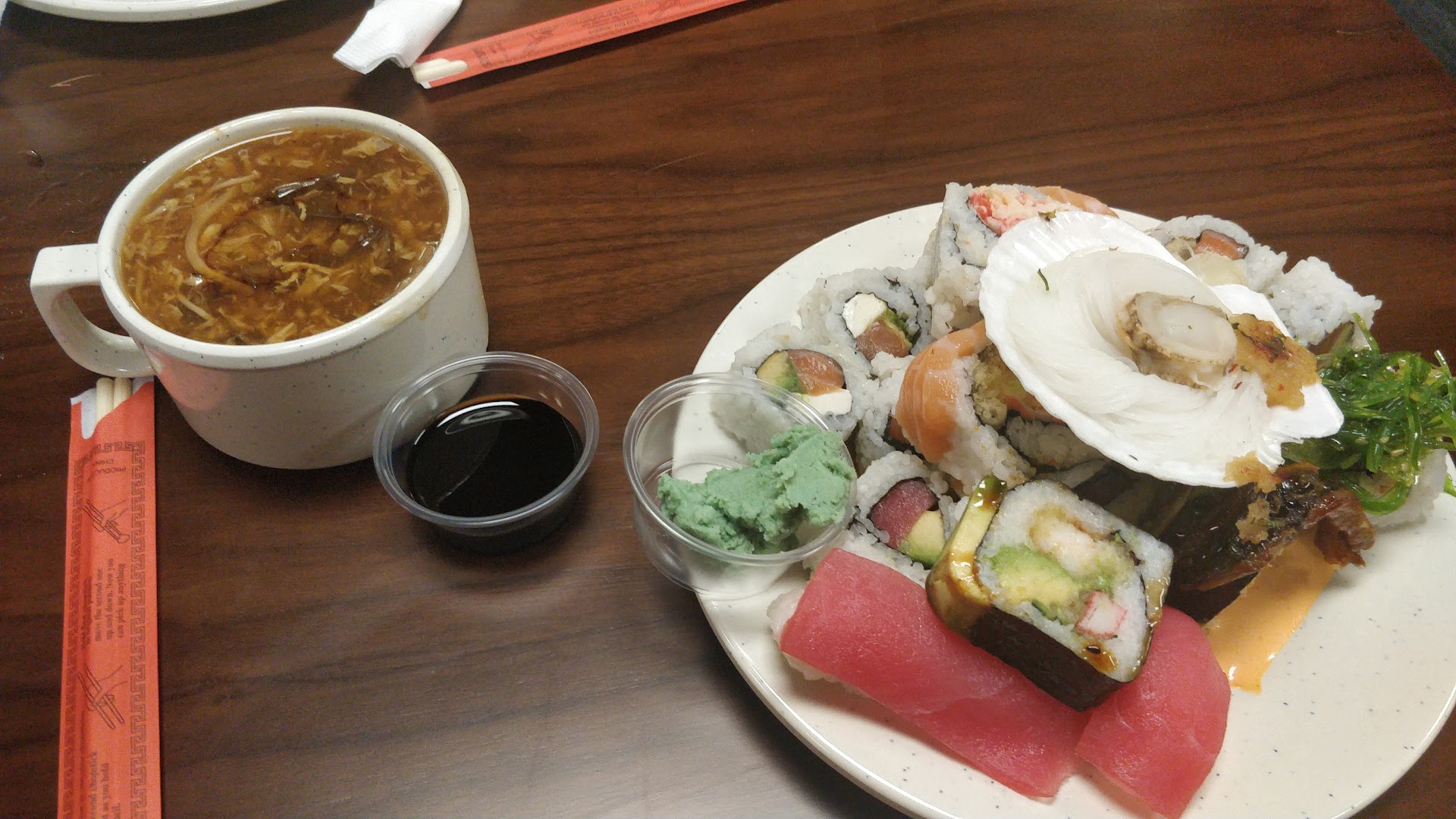 Ok, on 3/5/2024 I went with a friend and there were a couple of hairs in my Pepper Chicken, the Coconut Chicken was made of fried chicken skins with sauce. The fish had a gross film over it, shrimp tasted spoiled. Bad waitress, had to ask for refills, she forgot to return my credit card, she didn't speak or smile. No one was friendly, no smiles today. Understaffed also. It was clean. The Hibachi grill wasn't fired up, so I suppose what little that was out was leftover from the previous night. Nothing was warm. Should have been fresh and hot. What has happened? My friend said that she felt the same today and didn't eat much at all. We should have went to McDonald's. We still paid and left a tip. I honestly didn't feel she earned a tip, maybe a tip would cheer her up and encourage her to refill drinks. 😠 Not sure that I will return. I have been there 5 times since opening. But today was my last. I will return to the Great Wall.. Very disappointed and this...