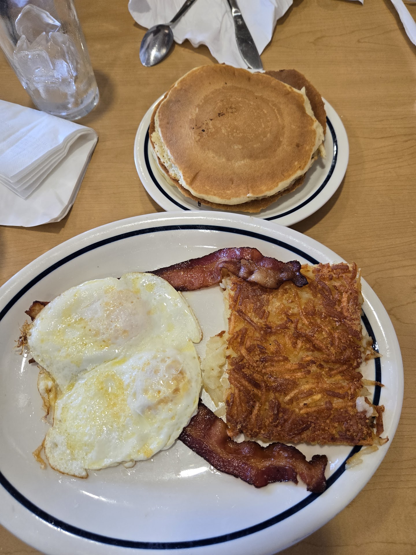 Read moreI am a big huge breakfast fan & had been craving iHop for over a year but didn't have anyone to go with. Not too long ago, after getting off work at night. A friend & I decided to visit the Kokomo location. It was close to midnight when we arrived. Half the restaurant was closed so we were seated in what used to be the smoking room. The environment was cool... We did sit the the dining room for almost an hour before getting our food. The wait time was weird because the only people dining in were the 2 of us, a guy who was eating by himself & a table of 4 guys. I did see a DoorDash driver appear to pick up an order but noticed no other pick ups while there. There was no silverware at the table the waiter sat us at & we had to ask several times for silverware before he grabbed silverware from another table & gave it to us. I didn't notice him replace the other tables silverware so I'm guessing that's probably how my table ended up without it too. I ordered strawberry cheesecake pancakes & at one point, while waiting, I overheard someone yelling "How do you make the strawberry cheesecake pancakes? I've never made them before." When I got my pancakes, there was strawberry but no cheesecake at all. So I paid for special pancakes that I didn't receive & that was very disappointing. Also my friend ordered a orange juice & a Coke to drink. He requested the juice be brought out with our food. Well our waiter forgot to bring the orange juice & when brought the food. He did end up removing the charge for the orange juice when we got the bill & let him have the orange juice anyways. My friend thought the orange juice tasted weird. I took a sip & can confirm that the orange juice tasted a bit "off"... I dreamed about my next trip to iHop for over a year & it was definitely a...