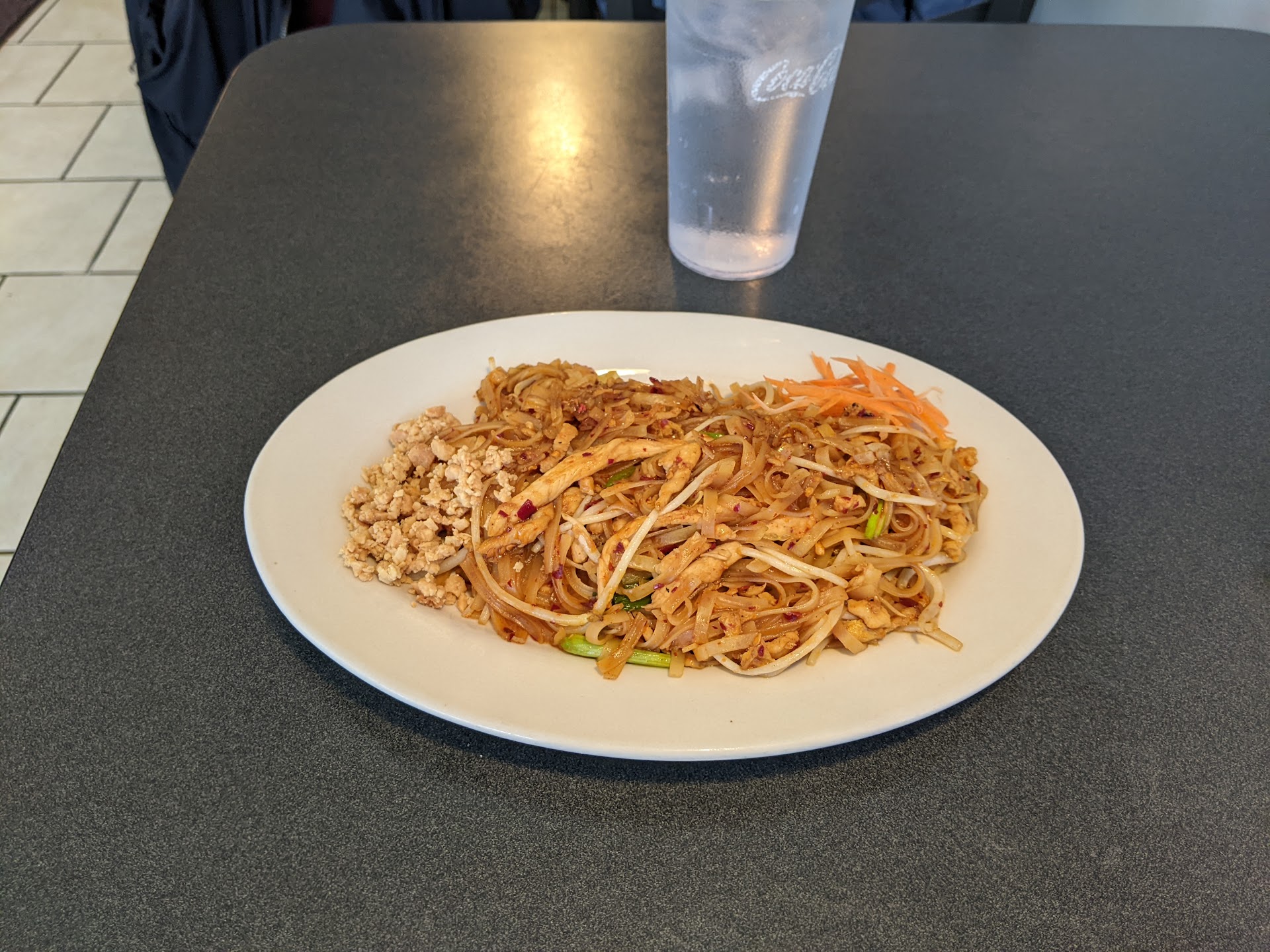 My husband and I love Thai food and we paroosed the short menu. Usually a short menu means that they specialize in a few dishes that they make well. Usually. Here was a short menu with some lunch specials and entrees. We picked a noodle dish because it seemed safest. A version of Pad Se Ewe but called something a little different. I dont recall.