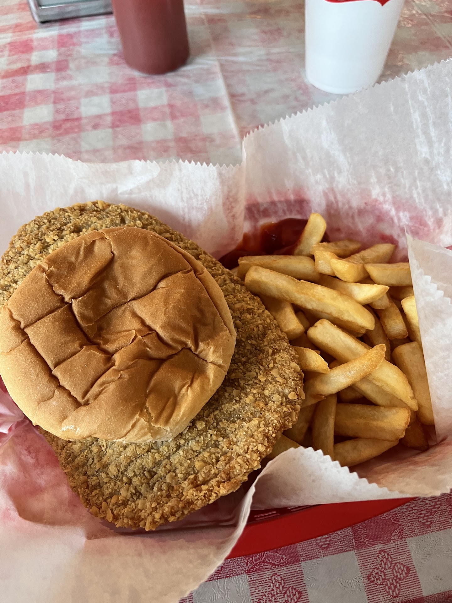 Ā Ā Ā Read moreI don't really like leaving bad reviews, but also want to be honest. I'm not sure why this place gets so many high marks because it isn't that great...at least, not for me. Upon first walking in I noticed that none of the employees were wearing masks (March 2021) and realized how dirty the restaurant was after I took my seat - and I don't mean just in need of sweeping, but sort of grimey on the chairs and walls. The food was something I could've done a better job of cooking at home (burger and fries) and even the 'old fashioned fountain soda' tasted like a regular ol' soda. Also disappointing was the fact that everything arrived on or in styrofoam containers, even though I was dining in. I've really been trying to support local businesses lately, but don't plan on going back...