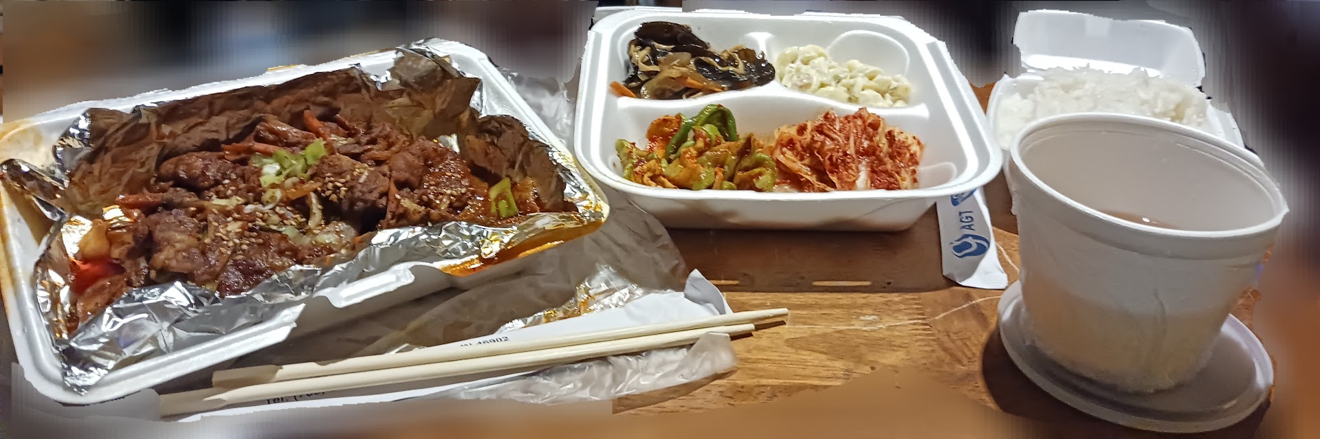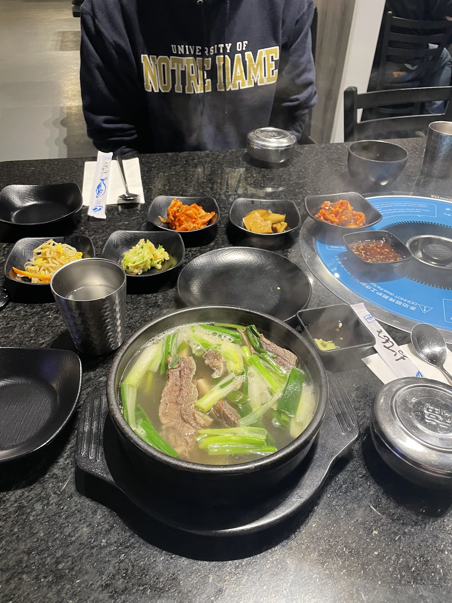 We had the all you can eat BBQ. We were fairly warned that the ayce window was for only two hours and we would be financially responsible for wasted food. It was served with a caddy of dipping sauces and about a dozen small side dishes which were almost universally delicious and offered a wide variety of flavors. Of special note was the fish paste soup, eaten with rice.