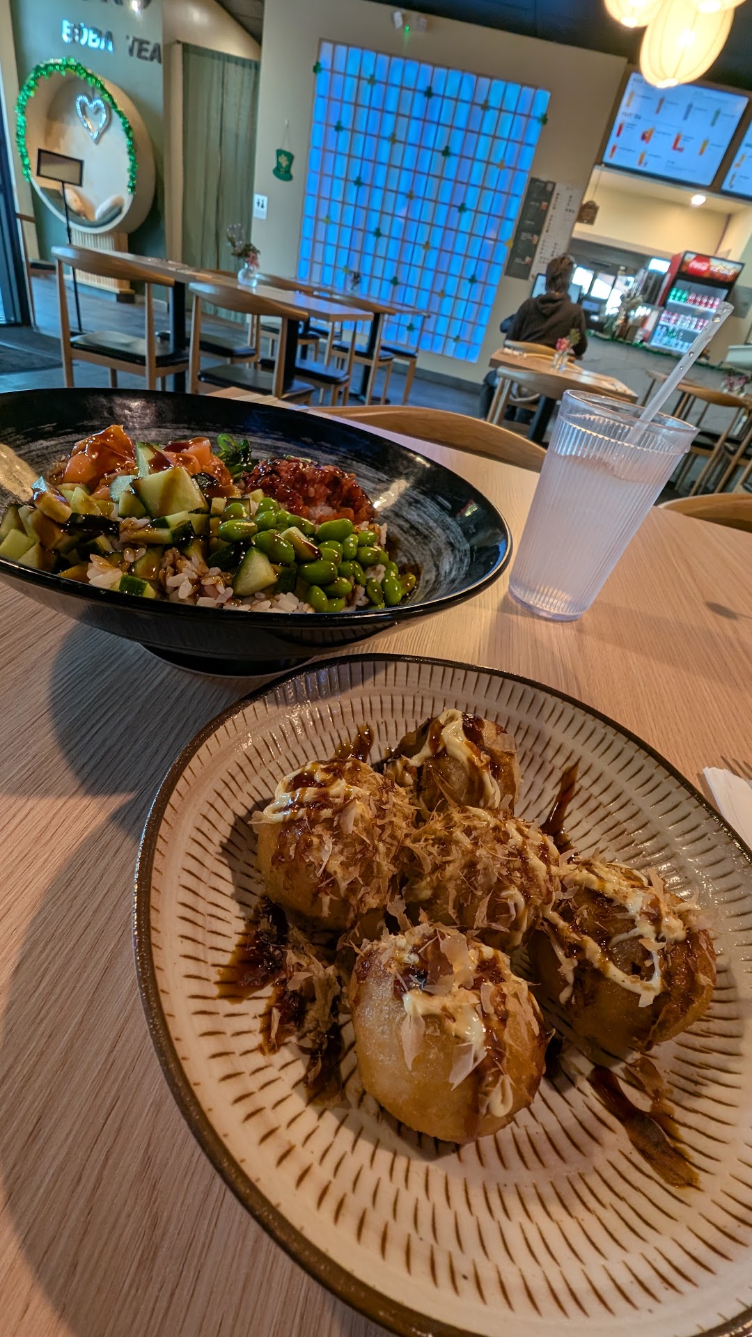 I opted for the Happy Bowl (poke) and the takoyaki. The Happy Bowl was a generous and satisfying meal, featuring perfectly cooked rice and an abundance of quality protein. The flavors were fresh and well-balanced, making it a truly enjoyable dish.
