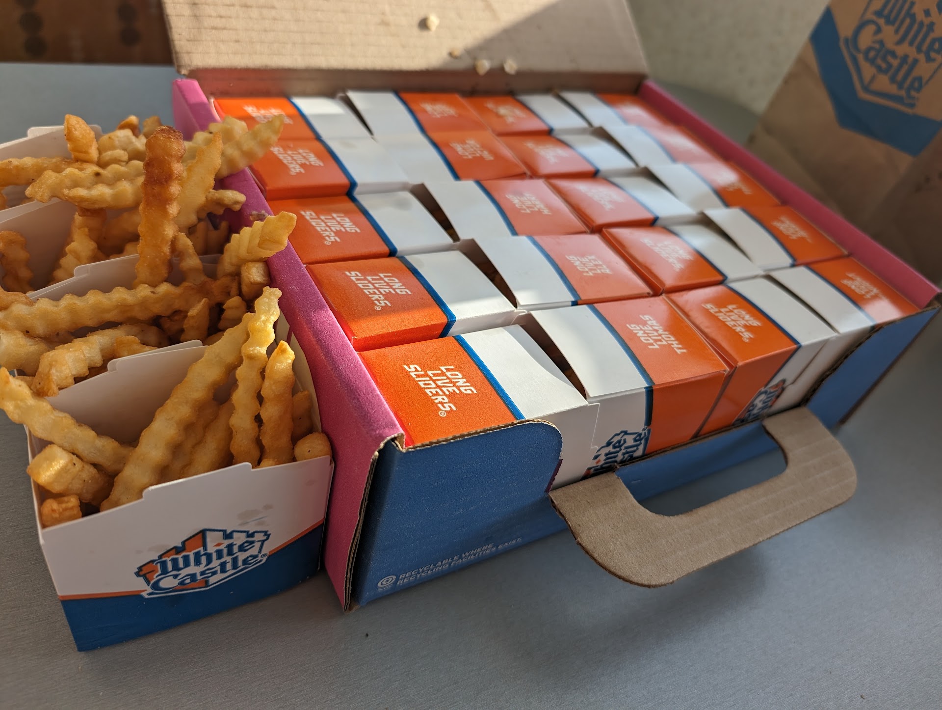 My bestie, dog, and I are on a cross country trip and stopped at White Castle because apparently it was on my bestie’s “bucket list.”