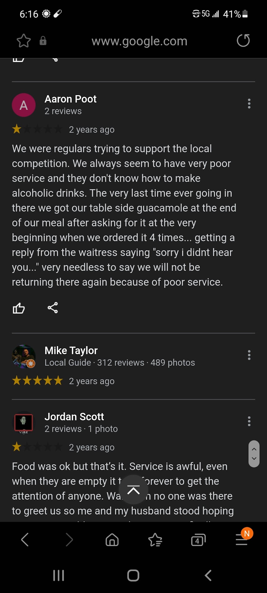 Read moreFirst off it has been over 10 years since my wife and I had tried this restaurant. Due to Enrique's not being open we decided to give this a another try as we had heard it had improved since the last time which was subpar at best for food quality. After being sat down the server was friendly. The food arrived faster than normal which I found concerning as it did not appear to be fresh. This would be the last time our server would attend to the table the entire meal to include neglecting to even provide additional water when everyones glasses were empty. There being only 1 group to tend to other than us, I felt this very unprofessional and showed a lack of care for the service they supposedly provide. We were at this establishment for close to 45 minutes and were being ignored by every server passing by to simply clear the table of dishes and to provide the check. The food pricing is far beyond what it should be in comparison to the taste of the food which was a partial improvement from our last visit. The restroom area was filthy to put it lightly and did not appear to have been cleaned or maintained for an extended period of time. It's not very often I feel dirty after using a restroom facility but this topped it for me. I would also note the entire time attempting to eat our meal we were in constant harassment by an abundance of flies. This may be contributed by the several tables possessing uneaten food and several dirty dishes upon our arrival. All in all, this experience was the final straw in any of my family putting any kind of confidence this establishment will change its ways or operating procedures. I would caution anyone who is thinking about looking at this place as an...