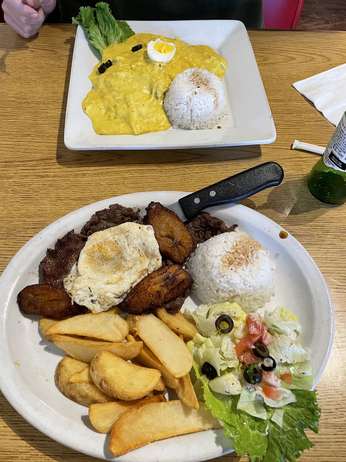 The food was a knock out. Holy wow, it's been a while since I had food this unique, this delicious. I bellied up to the Bistec Alo Pobre (juicy grilled steak served with rice, fried plantains and fried egg, with traditional salad, $19.50). The steak was cooked absolutely perfect! It's not a huge piece, thinner and oh so tender. I LOVED the fried plantains. They were delectable, almost like a side dessert but paired so well with a bite of meal and egg. Think fireworks in your mouth. I mean you couldn't get a bad bite. Everyone went so well together. I would order this again and again. My husband ordered the most unique looking dish, Aji de Gallin a (delicious shredded chicken breast covered in yellow Peruvian pepper cream, piso bread, topped with parmesan cheese served with white rice). This dish is phenomenal! I thought I liked my dish - I liked his even more. The flavor is exquisite. Moist, tender chicken smothered in rich, creamy sauce. Reminded me of Singaporean-style curry, only a less spicy. If you're really in the food for something different, this is it.