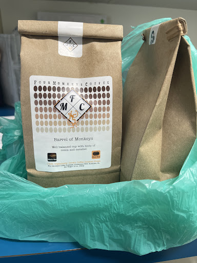 Had a chance to stop by Four Monkeys Coffee Roasters this morning, and couldn't have been more impressed. Chris was knowledgeable and helpful in selecting beans, and brewed a fantastic pour over. The presentation of the coffee isn't something I normally comment on, but the glassware goes nicely with the cozy space. I highly recommend taking a break in your otherwise hectic day to enjoy your coffee in their space (let's be honest, we all need to run around a little less), and of course grabbing some of their perfectly roasted beans to go. Once you smell the inside of Four Monkrys, you'll understand...