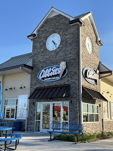 I have been to this place a few times since it had opened. I had planned to give them a few weeks of being open to review the place. I am not sure what the decision was to design a store that small, but they should have rethought it. If you have more than 3 customers in the store, it can get a little tight. The day I went I noticed over 10 employees working, which was entirely too many.I am not sure if the manager was training new folks or what. The manager was definitely on top of things. If I was rating just the manager, she would have gotten 5 stars. There should have been one person at the register, one person fulling orders, one person at the drive through, one person helping that person out, a "floater" who would jump in where necessary and someone working the dining area. I counted over 10 employees working. I went to the register, ordered my custard and sat at the table right in front of the counter. They were calling out orders, but could not hear the names. I say in front so the young girl would see me and hand me my order. When two families that came in after me got their order, I went to the register and was like, "Um, did you forget about me?" The young girl took my order immediately said, "I called your name." No, sweetheart, you did not. I sat at the table right in front of you and never left the store. She apparently put my order in the cooler. I am not sure if was her first job or not. She could have been a bit more professional and not be so quick to be rude and dismissive. I get it that you are a new store, but you have to have a better system of getting folks their orders. There is not an easy way to hear orders being called out. Either give out numbers and have a sign for folks to watch for their numbers, or get some sort of intercom system so folks can hear. If you were sitting outside, you would probably miss your order as well.