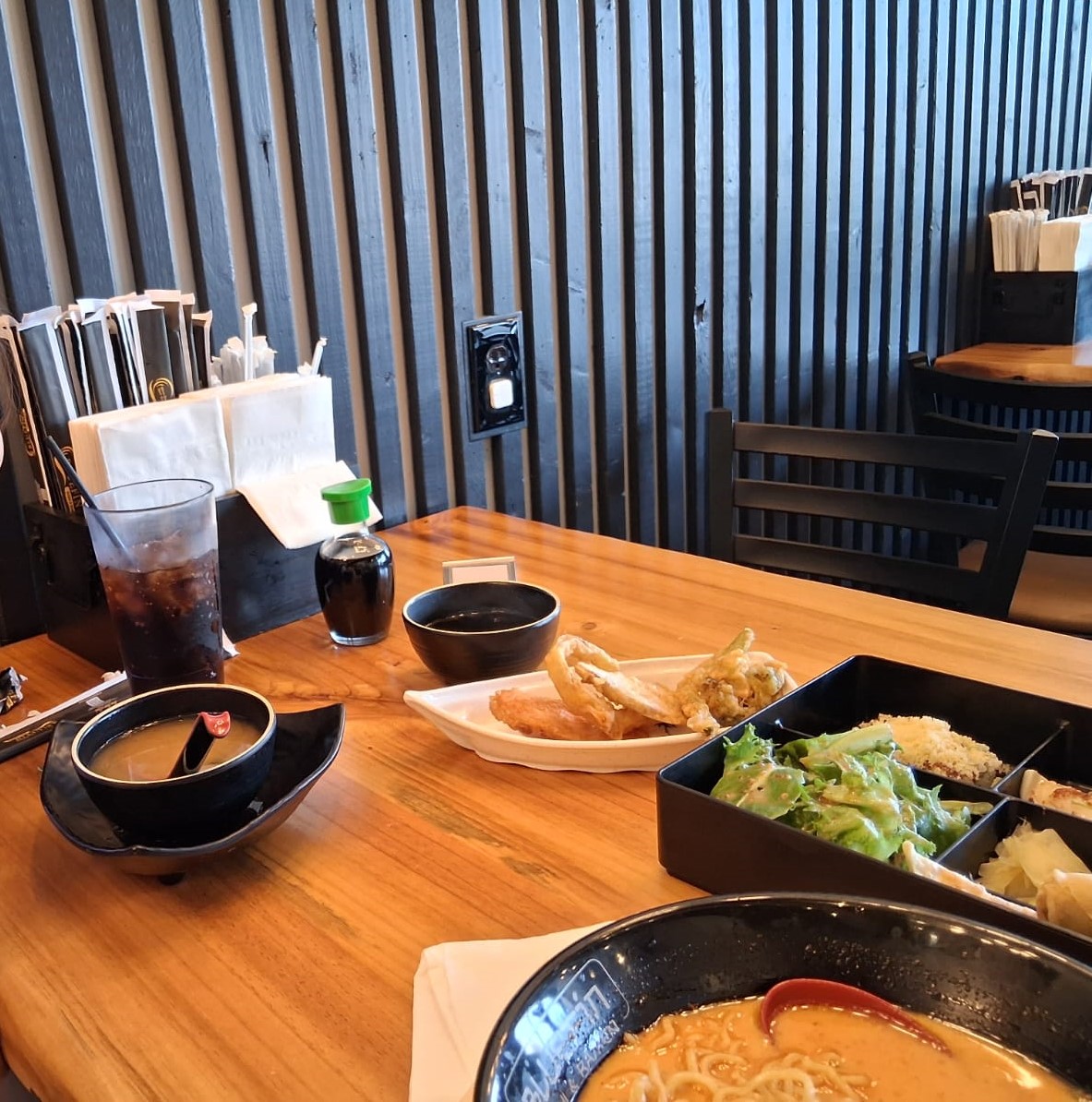 Ā Ā Ā Read moreWalking in the first red flag shouldāve been the self ordering kioskās, but hey McDonaldās makes them work so we pushed onward. The menu had a variety of items to choose from. From ramen to sushi, milkshakes and teas the menu looked great. We ordered and paid (including the tip for the ghost crew weāve yet to see). We picked a nice quiet table in the back, which we shouldāve know was to good to be true⦠the moment the appetizers showed up apparently so did their food truck delivery. The back door was propped open for the remained of our meal, which is cool, who doesnāt like a little fresh air right? Well it was the flies we couldāve done without. The crab puffs were just unseasoned imitation crab wrapped and fried. The pan seared dumplings we subpar (tasted like the frozen Costco dumplings) We are very picky with dumplings as weāve had excellent ones in the past. Now.. onto the ramen. Me and my wife both got the miso ramen (spicy) the best part about the ramen was the spice. Perfection. The rest of the bowl however lacked flavor. Ground meat tasted⦠well like ground meat that had just been dumped into the broth with the rest of the ingredients. Even the soft drinks where over carbonated. If youāve never had ramen before, this place might be a decent first time spot. If youāve ever had good ramen⦠avoid this place. BUT. Iām no Anthony Bourdain. Iām just some guy that spent $80 for some disappointing...