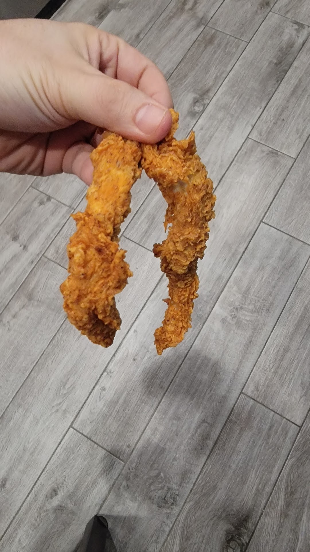 To the manger, you need to fire the young kid working the drive through. He is not very friendly or professional. He needs to learn some manners and needs to stop rubbing his nose on his shirt and his fingers and then touching customer's food. That is not only gross, it is a health violation. This chicken place is only slightly better than one of the other places my kid likes to frequent in Kyle. The next time, I will...