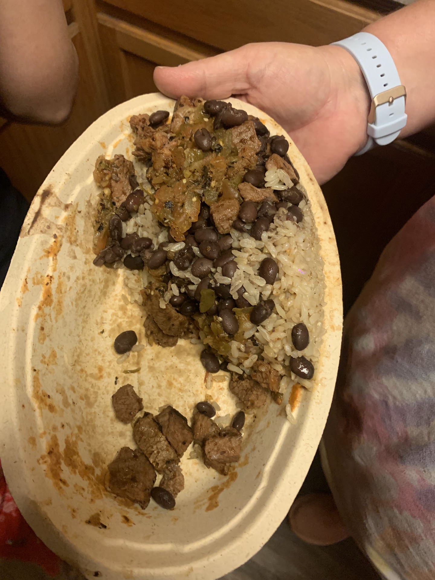 Amazingly bad. Seven o'clock on a Wednesday night, 12 cars in line for the window, so I went inside. First observation of this new store was all the trash in front of restaurant. I think there may have been a few outdoor tables. I don't know, as my first impression was of the trash on the ground and the open trashcans full of trash. 14 people in front of me. Amazingly, the 12 cars in line outside were long gone before I got my food. One person in front and she was rather robotic and disappeared before I got to the counter. The woman who took her place seemed frazzled, as though she was doing the job of three people ( she was). Girl on the register wandering around, halfway wiping tables (yuck!) I watched her at one point put her hands in the trash can, push the trash down a couple of times, punch in orders on the register and then box up food. No gloves. No handwashing. At no time was there more than one person in front of house serving -- and they kept walking off to restock, as only one person in kitchen and he was cooking and cutting meat the entire time. Later, the server in front, with gloves on, ringing up orders when register girl disappeared and then went back to serving without changing gloves. At one point, I looked around and counted 30 people waiting for their orders or waiting to order. Those waiting for food must have ordered online. Brand new store was filthy. Waiting in line for 45 minutes to order gives you lots of time to observe. Open kitchen was filthy. Overflowing trash cans. A dozen dirty, empty serving containers lying around on prep table covering it. Dust on plexiglass (or glass) sneezeguard indicating it hadn't been wiped in days. Food pieces in drink cooler in front of register. No sense of teamwork or cohesion. Everyone glum. Most were robotic, although the crew by the drive thru window (3 of them) seemed to be busting it and the guy cutting meat was steadily working. No wonder drive through so much more efficient than line inside. Just awful. Can't imagine going back unless and until under real management and staff training. Food was OK, but not...