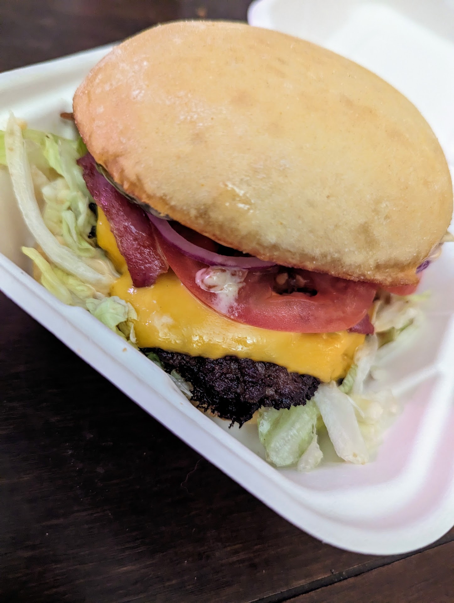The meat actually tasted like beef, the toppings were fresh, and the bun was soft and toasted. The fries were crispy and fresh, but maybe lacking in salt.