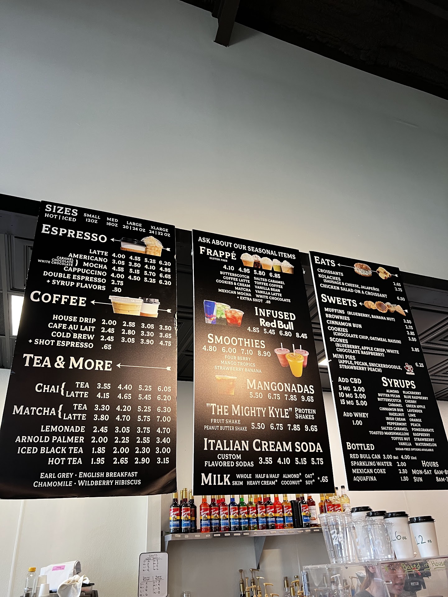 Read moreAbsolutely, loved the staff. Walked in & promptly greeted. They listened to me & my friends silly stories as we were desperate need of coffee (sleep deprived moms). We had a lot of questions & they were able to answer them. I learned the difference between Vanilla Latte vs. French Vanilla Latte. I've been to other coffee shops & they don't have time to explain to me the drinks. Impressed with customer service, the joy of the atmosphere, the variety of options available... it's all impressive!! The kolache are definitely worth the price. I was nervous about the pricing on it, but once I got it I completely understood price. I'd of had to of ordered 2 or 3 kolache's to of gotten the same. You can goes inside or take the magnificent Drive-thru. I did not do the drive through, but from what I could tell it was a quick & smooth process! I highly recommend you trying out this jewel of a business. I definitely will support this local soon to be hot...