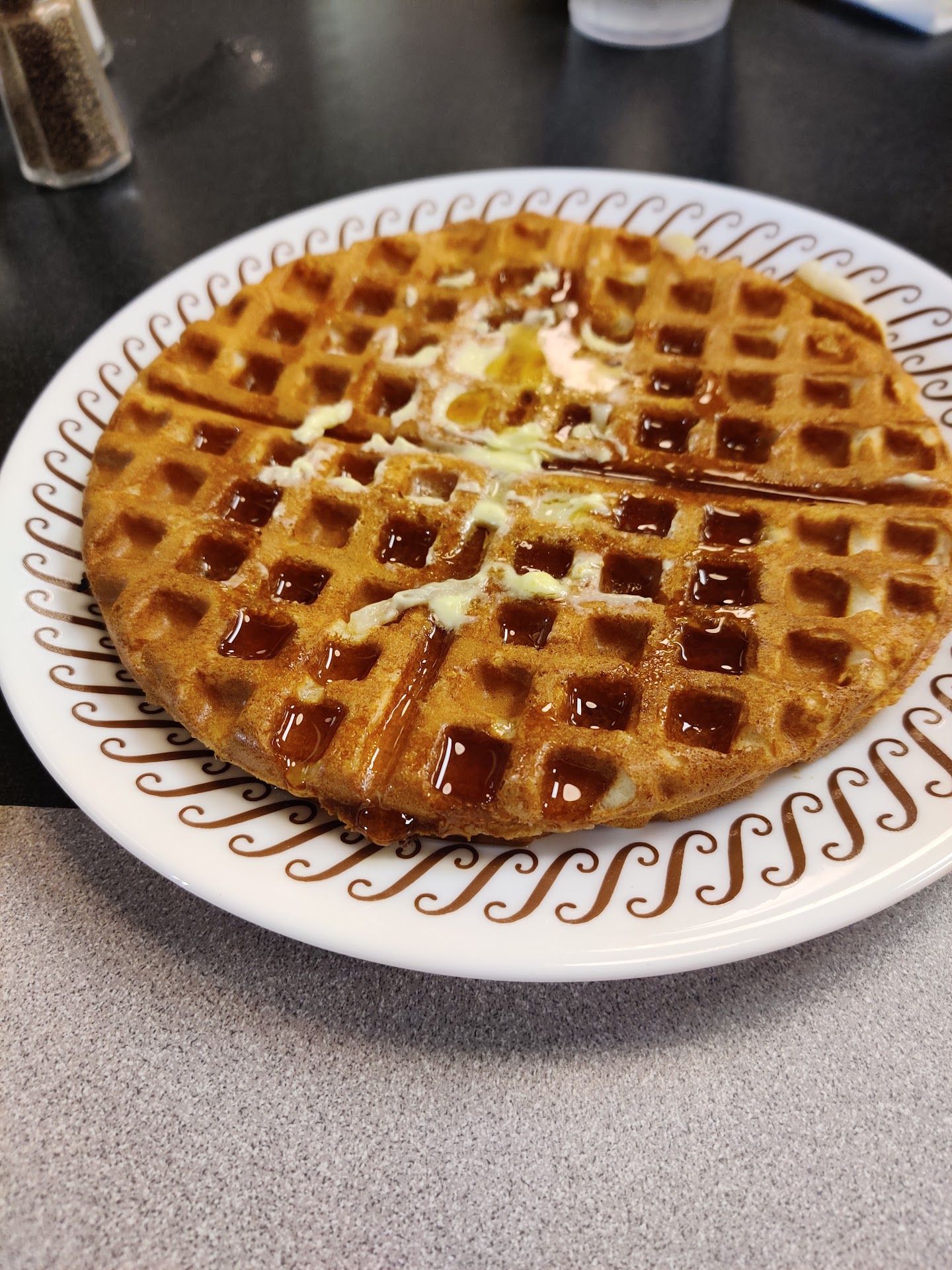 Ā Ā Ā Read moreWe have passed by this place a couple of times. We always commented how small it was, thinking we might be waiting for a hot minute just to be seated. We rolled in this morning, the parking lot was packed, but were seated at a booth immediately. It is a small little spot with a handful of tables. You can eat at the bar if you want to. I will first say, if I was grading on service alone this place would get 5 stars all day long. The servicing was amazing. The servers were very attentive and on top of checking on tables. I had ordered a waffle, hashbrowns and bacon. We had also ordered another plate of eggs, toast, bacon and hashbowns. Not more than 5 minutes after we placed our order, the server was delivering the food. Amazing! The waffle was thin. I expected it to be a tad bit crispier. They did give me one little thing of butter. I would have been nice to have a second. I did ask for sugar free syrup, which did they bring me. The hashbrowns were soggy. They were little crisp on the top. They should have laid out some clarified butter and let them sit for a little longer. The bacon was nice. I would have preferred a thicker cut of bacon, but that is just my preference. It would have been nice to have a side of salsa. They did have pepper sauce, which was fine. You do have to go up to the register to pay. I am glad they have the tip on the card reader, instead of having the server ask you if you want to tip, which is awkward if the lady ringing you up is the server that assisted you.
