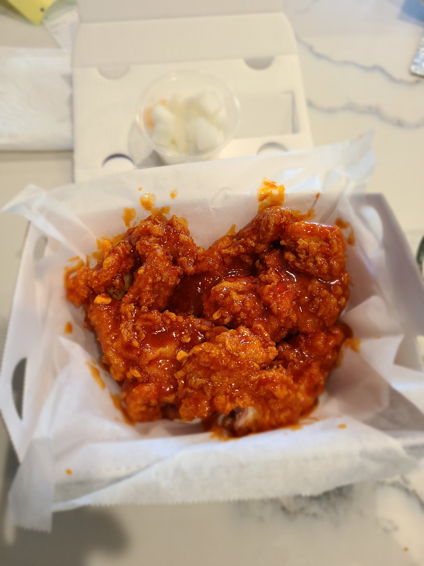 Read moreFirst time trying them, so I got an 8-piece boneless chicken with their Secret Sauce. Each one was big, juicy and tender. The crunch was there but not too hard & crispy, it gave you the chance to enjoy the tenderness of the meat. The sauce was savory too. Sweet on the first bite, a little heat that follows, and by the time I was done with the entire portion there was a lingering Korean BBQ/garlic aftertaste that remained. Plan on being solo for awhile unless you're OK with your surroundings picking up your garlic breath! I'm impressed and will definitely come back to try their other...