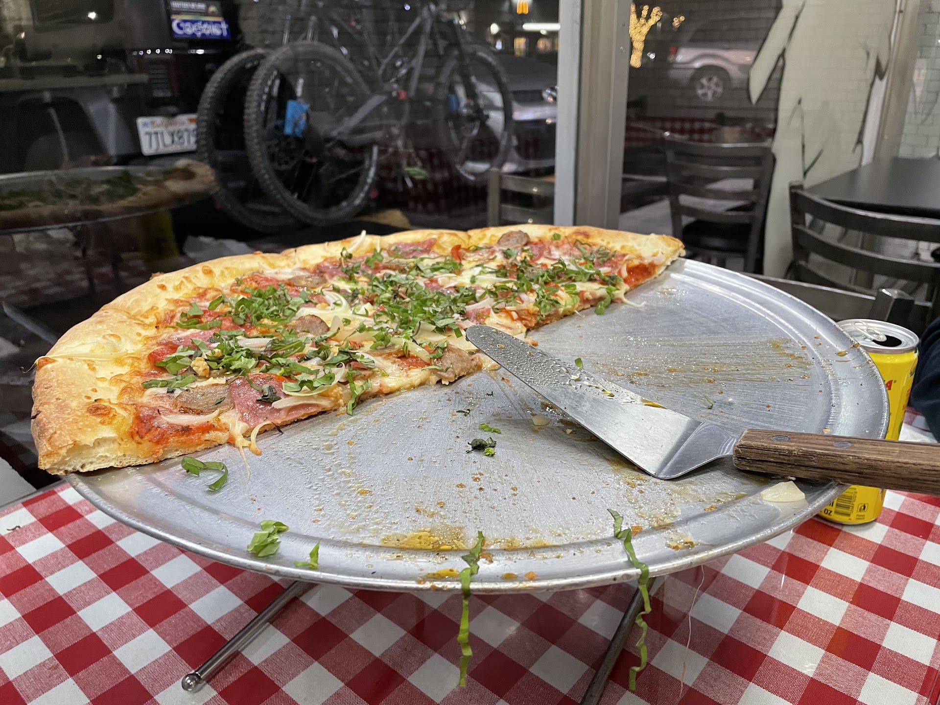 I stopped in this store, which I had seen in passing for many years but never bothered to enter, to grab a couple slices to go. After I ordered I realized that FOUR out of the FIVE employees I could see were not wearing masks. At the time of this writing, we are at the peak of the Omicron variant in 2022 and the health regulations in Los Angeles County require customers and employees to wear masks to prevent the spread of Covid19. And yet, only 1 in 5 was wearing a mask (including the owner or manager of the store.) And none wore gloves.