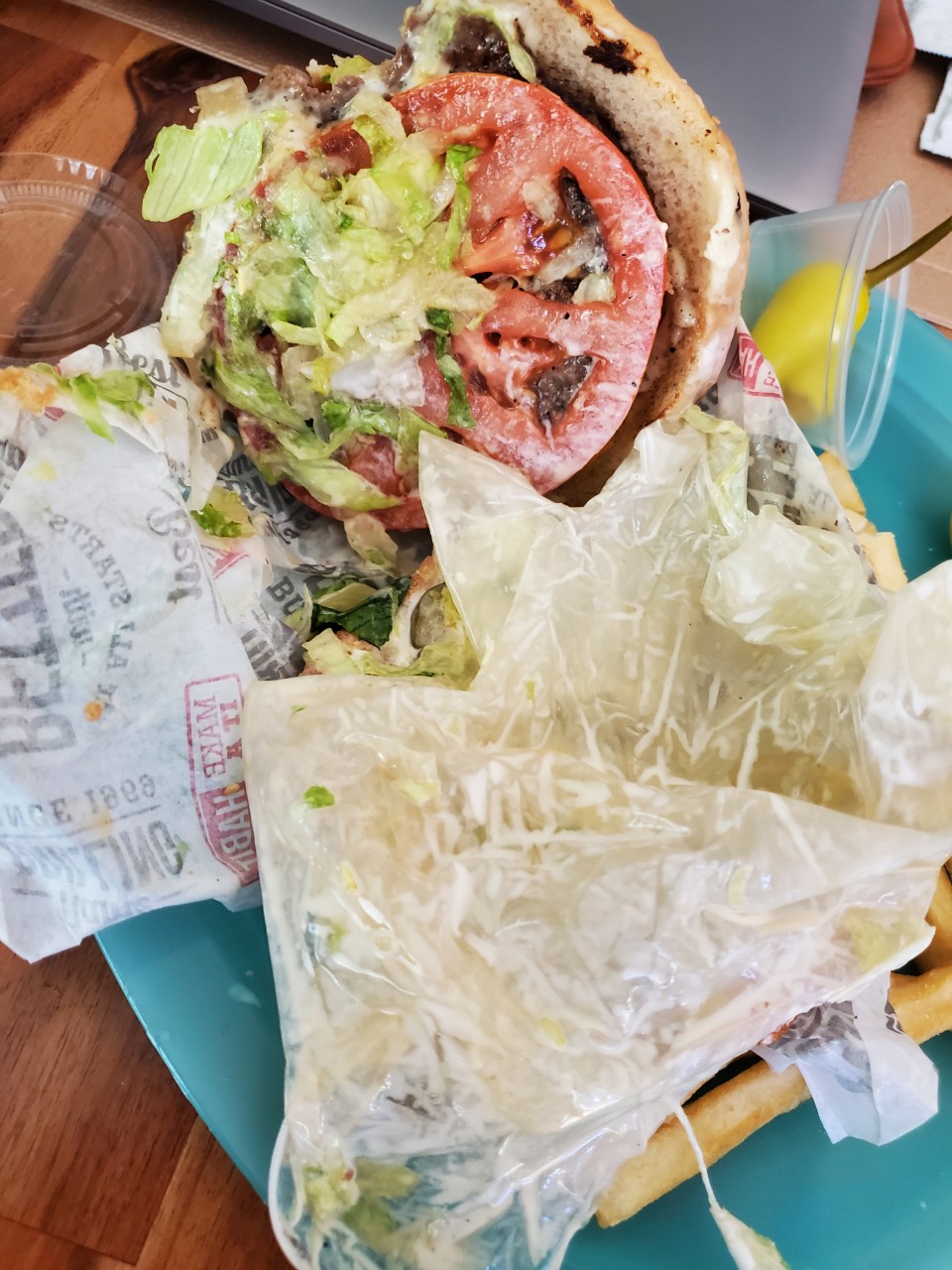 Read moreThe evening manager wasn't at all pleasant to deal with, considering it wasn't my mistake: I ordered 1/2 sweet potato fries and 1/2 onion rings but got sweet potato and reg fries. Not the end of the world. After showing the mngr the receipt, she took off with the fries - she seemed intent on keeping her back turned to us so we couldn't bother her anymore. But my gf was still waiting at the counter trying to get napkins, none on counters. Very least, the mgr did not seem at all sympathetic to a customer that was inconvenienced by her team's oversight. She could have let us eat the mistake order so we could eat them with our food before it got cold. I'm sure she's a delightful person outside work or would be on any other day. After today, I'd just rather not take that chance. The guy working the register was nice, helpful and attentive. Perhaps she isn't the manager. If I had to guess, someone else has probably complained about this person before so you'll know who I was...