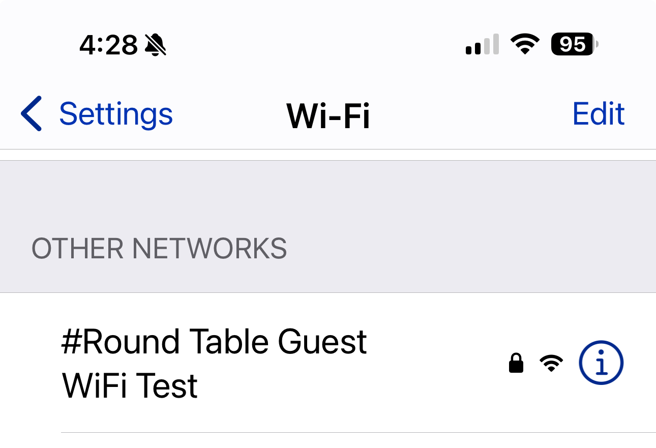 I ordered two pizzas to go for $55. While waiting for my order, my phone detected a WiFi signal labeled for "Round Table customer use only," as shown in my screenshot. I politely asked the cashier for the password, but she claimed the restaurant had no WiFi. I requested to speak with a manager who admitted they do have WiFi but insisted it's not for customer use. Even after I showed the manager the screenshot, she maintained that the owner does not allow customers to access it.
