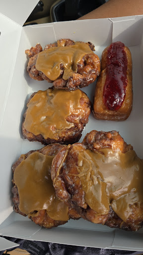 I have had the AMAZING pecan bars brought home to me from this bakery, but haven't gone in until today. We came in for their donuts and to see what other goodies we might want, and everyone was so friendly, and the place was clean and looked like a storybook version of a country bakery; right down to the uniforms of the great staff. We took way too long making up our minds on what to get because everything looked so good, but finally settled on some donuts and a blackberry coffee cake. I had a buttermilk bar with raspberry so far, and honestly, I didn't know what a donut could be until trying this masterpiece. From the slight crunch on the exterior, to the perfectly soft and fluffy interior, to the excellently balanced flavors, it could easily be considered the best thing I ever ate, donuts edition. I'm sure the coffee cake I'm hoping makes it tomorrow will be just as good, given this bakery's track...