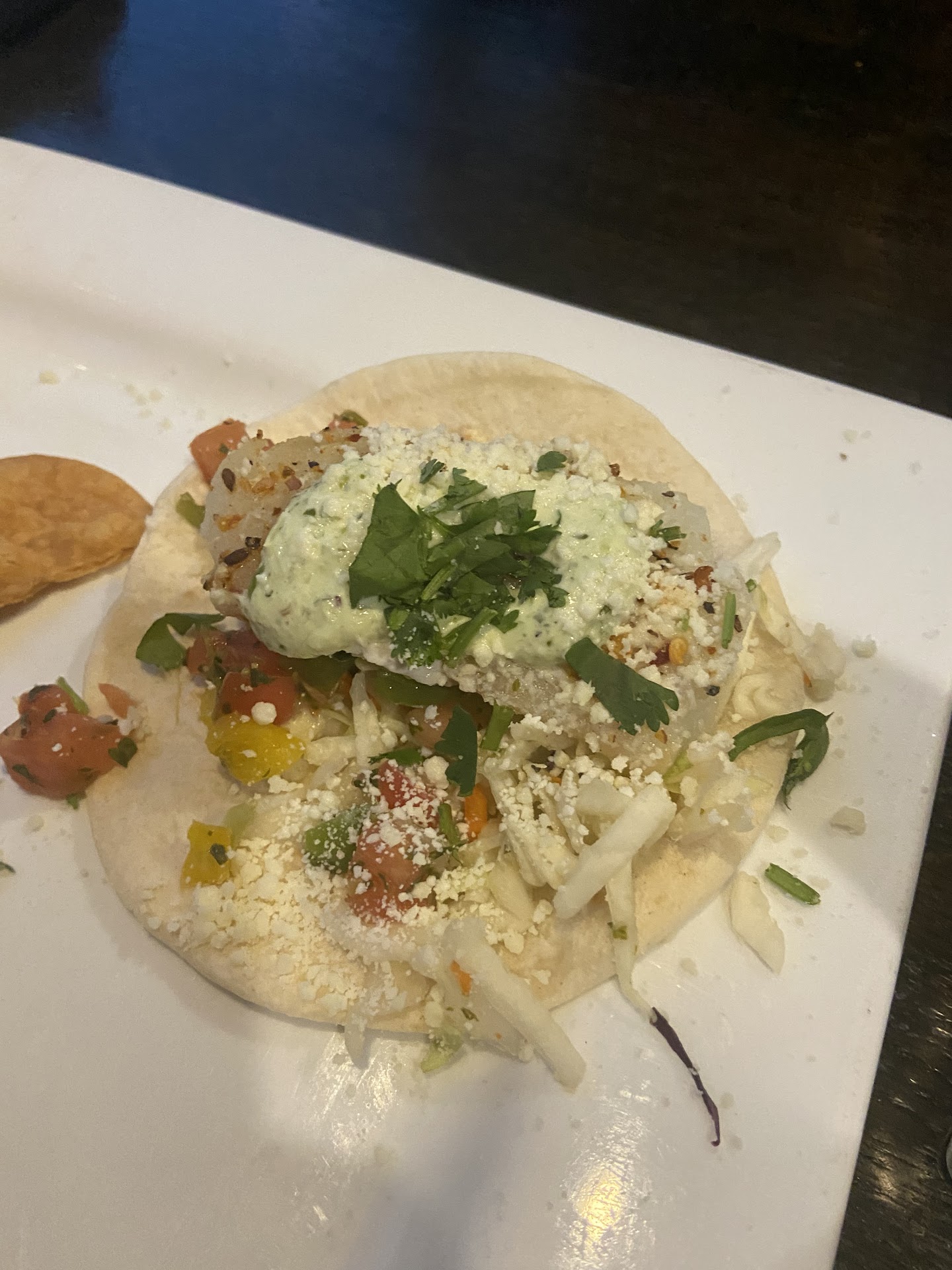 The fish tacos were very bland and tasteless. The cod was probably steamed I’m guessing? No color on it and it didn’t seem to be sautéed in anything. They say it comes with “salsa” but it’s really more of a simple pico. The tortillas were not grilled but raw and tasteless. Honestly all I could really taste was cilantro and an essence of peppers. The fish was BLAND. I suggest pan frying to add some color and adding some spicy seasoning as they are tacos. Maybe some butter and lemon or lime after it’s been pan fried.