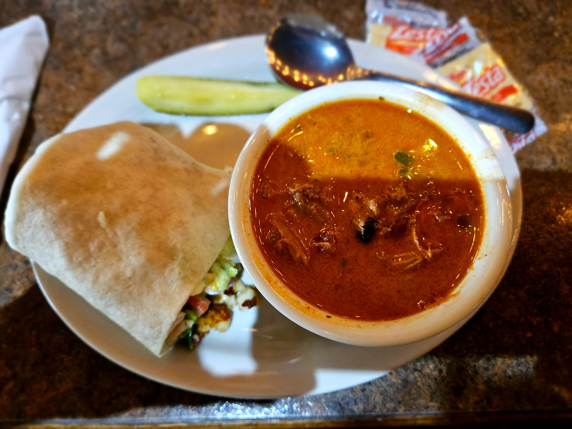 Read moreI had the taco soup (my picture captured a shadow) and split a chicken wrap. Both were so good I was sad when it was gone. The chicken wrap is plumb full of moist delicious chicken, real bacon, lettuce, tomato, basically whatever your heart desires. And that taco soup..I almost went with the roasted veggie soup, but I'm so glad I changed my mind. This soup was loaded with seasoned pork, and just the right amount of "zest" to warm you right up on a chilly day. If you haven't experienced Boot Hill, this little gem nestled in the beautiful old LaCrosse Boot Facotry is definitely a must! Oh, and the prices were spot on for the amount of food they serve! Can not wait to go back! Thank you Meghan and your chef, she...
