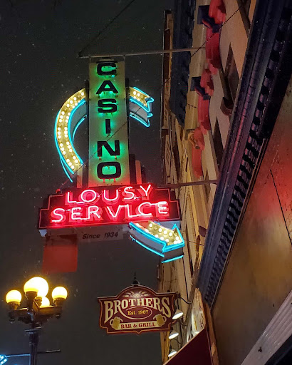 Read moreThey do mostly imports or b-brands. No Bud, No Coors, No Miller. It really is a great atmosphere...good mix of young people, older people, different lifestyles etc. It is little changed in 80 years, and Casino Girl still looks down from her pertch at all who come. Color of the Bar is their marquee drink...advertised as a shot but can get as a mixed drink as well. Russians are also what they are known for and do both white and black very well. Rhinelander shorts are only $1 if you're pinching pennies. Jukebox is usually playing classics at a...
