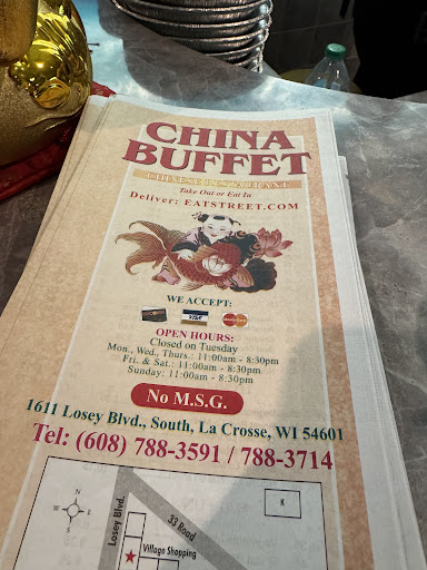 It is honestly shocking that China Buffet has that many poor reviews because I have been eating their since 2009 and I have never been ill. It's a family run business that caters to price point, not fine dining, and their clientele is mostly college students on a budget and high schoolers so it is a really good market and location for them as well as their patrons. It is wrong to compare the food to hunans or golden eggroll because they are not buffets. When one looks at other buffet options in the la crosse area you have china inn, super buffet, and china buffet and China Buffet has the higher...