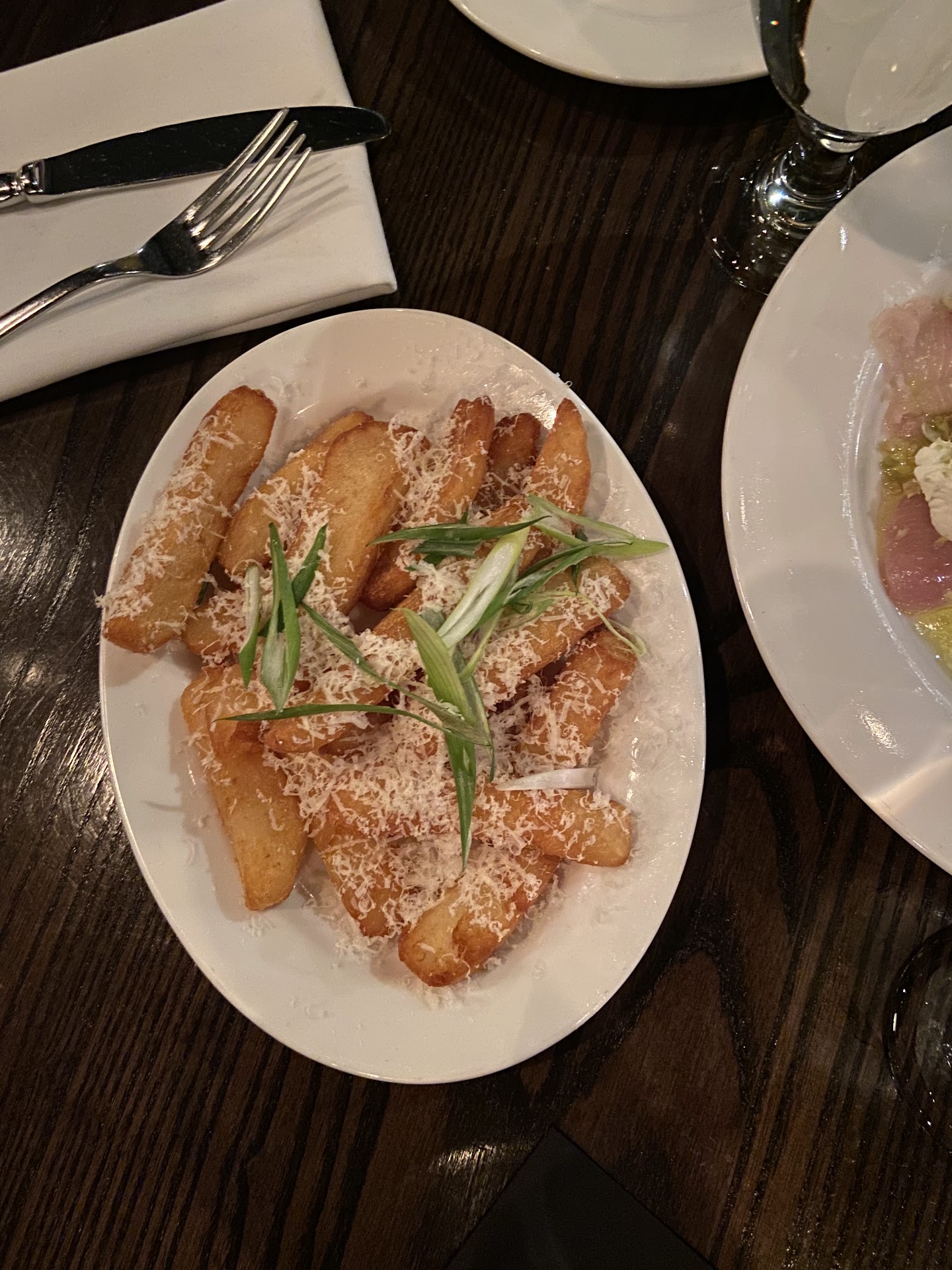 We ordered three appetizers, the hamachi crudo, poached pear endive salad, and the triple cooked French fries with horseradish cream. The fish was clean and beautifully sliced. There was a crunchy topping that was not mentioned on the menu, but it was delicious all the same whatever it was. The salad left something to be desired. There were hardly any walnuts to be found and that the beautiful Bohemian Blue sheep’s milk cheese was used so sparingly. Too sparingly. For the fries, if you love wedge potatoes, these were meant for you, but a slight warning on the horseradish cream. It may just completely clean out your senses.