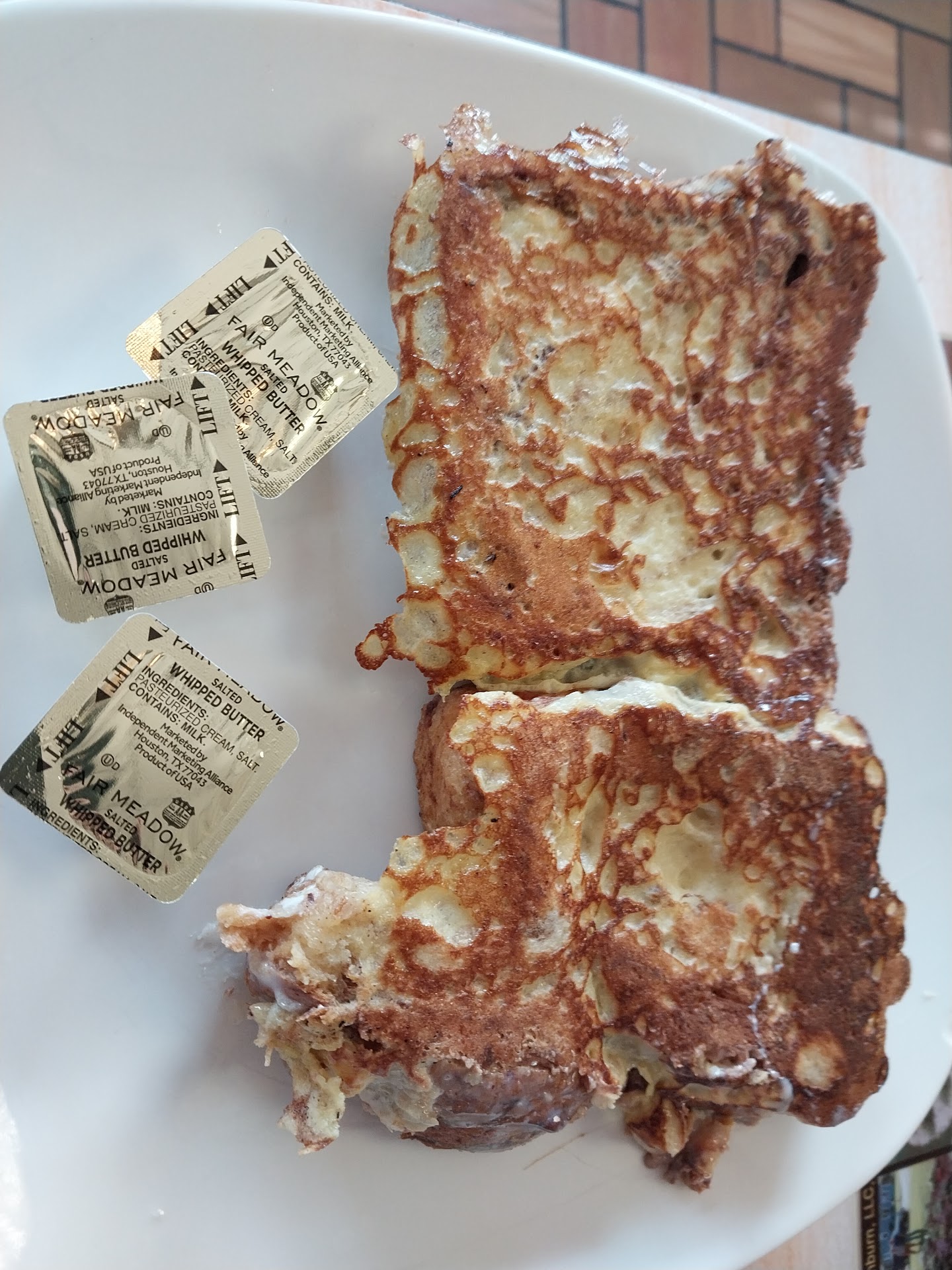 On Wednesday morning about 7:30 my mom and I stopped in for breakfast. Small parking lot but big restaurant. I think we could have parked along either side of St James had we not squeezed in to a spot, so parking shouldn't be a problem and shouldn't scare you away if it's full...there is plenty of space inside! We had told Lori twice, to come back...we needed more time w the menu. As my mom and I perused the menu, I was going to just opt for two eggs and toast. My mom asked if I'like to share a bacon omelet and apple fritter french toast? Server Lori assured my mom they were delicious. I obliged For how not busy it was it felt like it took quite a bit for our food to come out. But.....once it did... worth the wait! I unfortunately had no room for my apple fritter french toast, my mom ate hers and exclaimed "this is the first time I've ever had french toast and didn't drown it in syrup.... I didn't even need syrup." Some bites she ate just the french toast, some she dipped the bite in a little syrup. It wasn't loud in Marges; not sure if it's because it wasn't busy or they just have great acoustics, either way, it's appreciated. I don't know what it was about the omelet... the bacon? The oil the eggs were cooked in? I didn't discuss w my mom her thoughts, but I thought there was a bit sweet taste to it! I liked that the tables all had small ads for local businesses! Way to keep it local/small! There was a white board on the wall w the delicious sounding daily Specials and quite a selection of pies! Thanks Marges for a delicious meal served by friendly staff in a welcoming and comfortable setting. Will stop in for lunch next time I'm in...