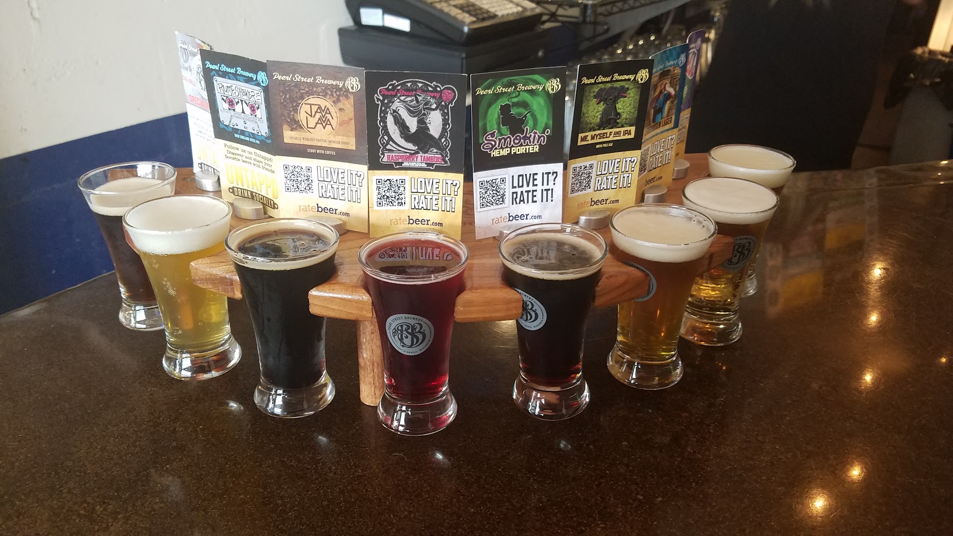 Since I love almost all beer I couldnt make up my mind so our nice bartender explained how their flights work. Love the pricing, flight glass holder, the beer cards, and the opportuinty to try 8 or 16 beers. I loved the cards that gave descriptions and had quick scan links to rate the beer on various apps and websites. These need to be handed out with every beer with hope the customer drops it off at a bar outside of La Crosse to get the name out.