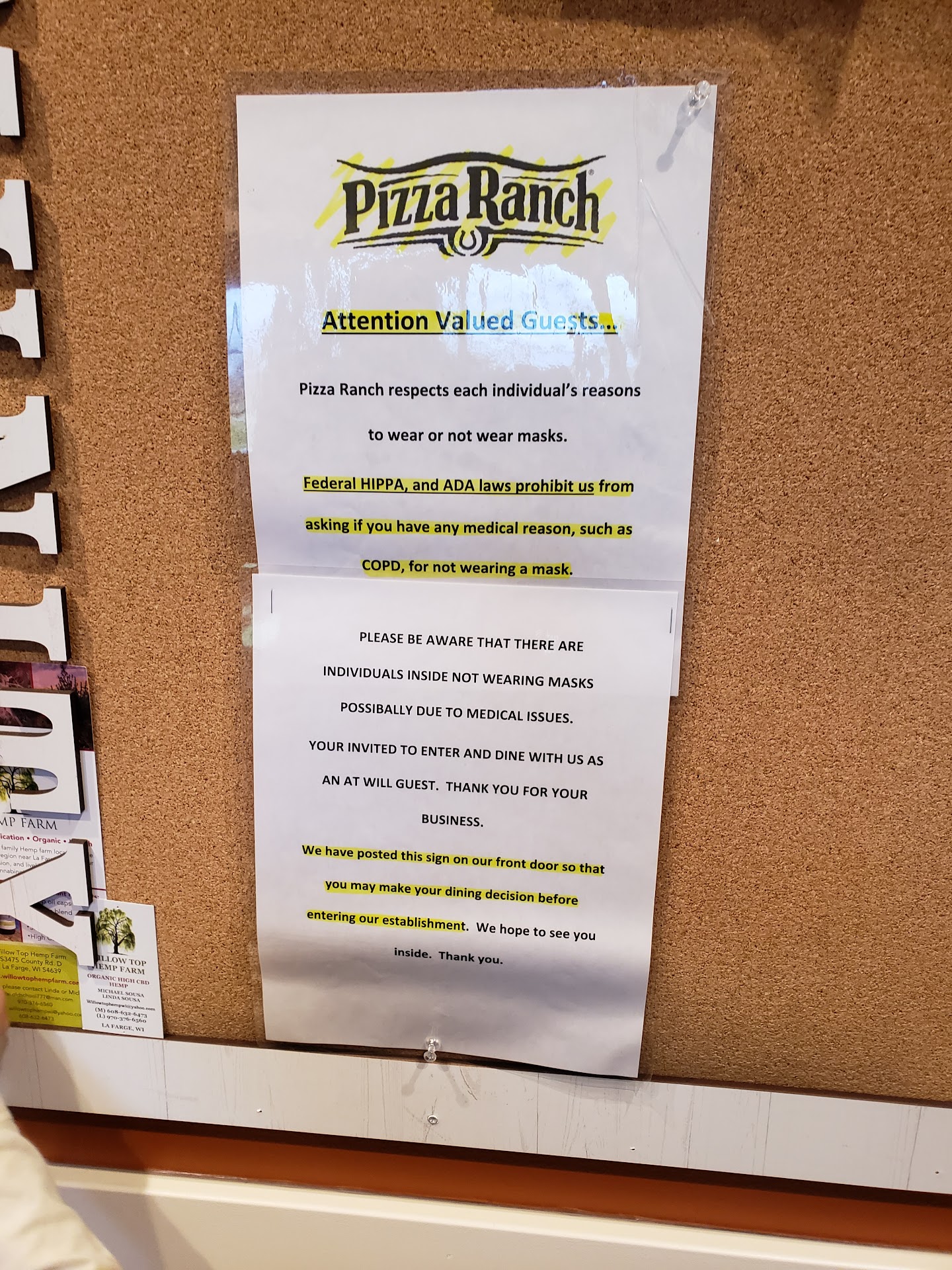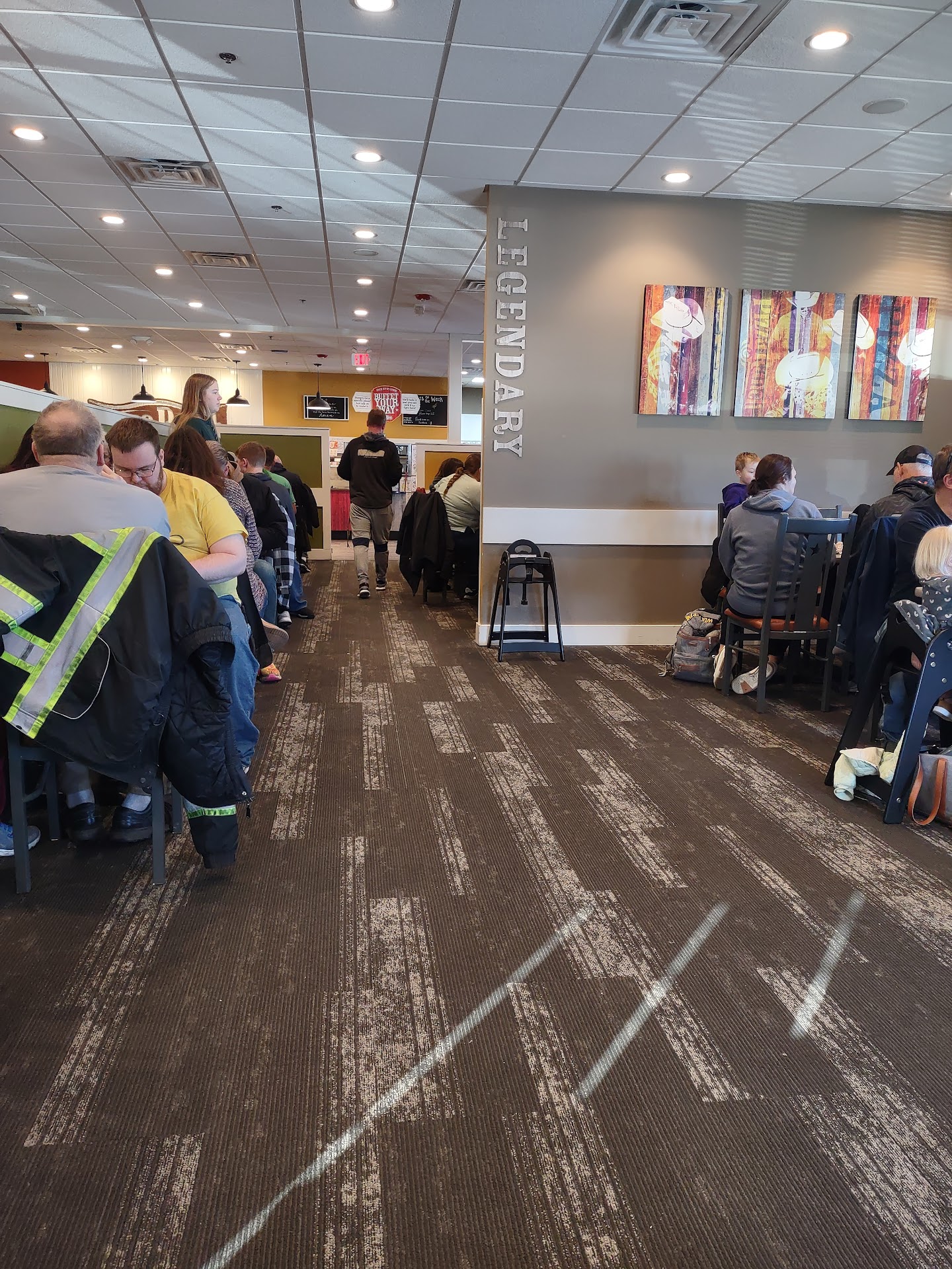 Read moreWhoa!! Yesterday, Saturday, we wanted to grab lunch before leaving town... about 12:20... apparently the whole town thought the same thing!! We took one of the last parking spots along the back row of the parking lot. Opened the door to enter... the next door in to the restaurant... stopped...as the line was THAT LONG!!! However... the line moved rather fast. Then... I heard the cashier "there's a 15 minute wait for a table." Man....feeling defeated. However, a few minutes later by the time we got to her, she pointed out a table for our party of two. Despite my worry that the buffet would be empty... Pizza Ranch kept the food full and there was no lacking in options. There also wasn't a line for each food item, as I expected. Thanks Pizza Ranch for crushing all my worries and providing a delicious lunch. When we left an hour later the line was STILL out the door!! I don't know if this is a typical Saturday afternnon, but it was worth the wait. I didn't encounter much staff but they were all kind. It's been ages since I've been in a Pizza Ranch as most in MN have closed.. one difference I noticed was that instead of the little brown bowls for ice cream they now offered black disposable cups. Maybe it's not new but just new to me... they also offered three dessert pizzas, including a chocolate chip cookie one....that I dropped a bit of ice cream on to! Thanks for a delicious and filling lunch...