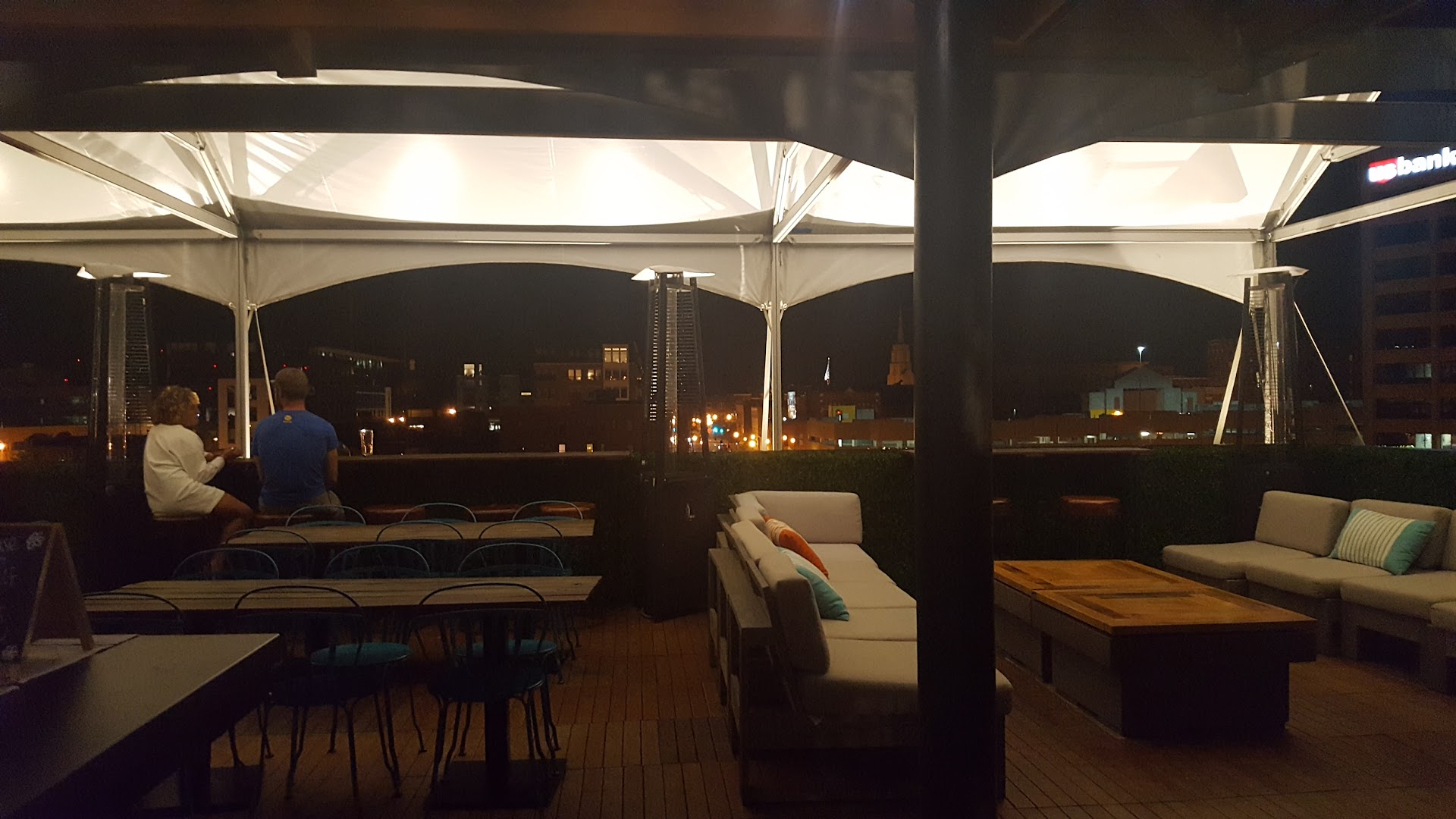 My friend and I stopped by here as the first bar of our night time adventures, and sadly we didn't feel compelled to stay here past the first drink. The drink menu was very limited (and expensive), and when we asked if they could make a mixed drink not on the menu we were told that it was not something they could do. It felt less like a social drinking space (which is what I thought this was when first heading up there), and instead felt more like a space to order fancy snack food and they just happen to have a small drink menu for the night. Perhaps it was just the way they were operating that particular night we were there, but we weren't overly impressed. The wait staff seemed overwhelmed as well with it being a Saturday night. I felt bad for the waitress we had, although you could tell she was doing her best to help out everyone she could even though she was probably given more people to wait on than she should have. We ended up waiting a long time to get our bill even though we only had one drink each, but I can't fault her for that. She was very nice and accommodating during the little interaction we did have with her. They could definitely use a more better system for managing the space when it comes to the customer to wait staff interaction. That being said, one of the major positives of the rooftop was that it was definitely a lovely atmosphere. The view was very nice, and on a night with nice weather it was a treat being up there. Definitely the kind of place you stop by just to have one drink and enjoy the view before venturing out to a more traditional bar type of place for...