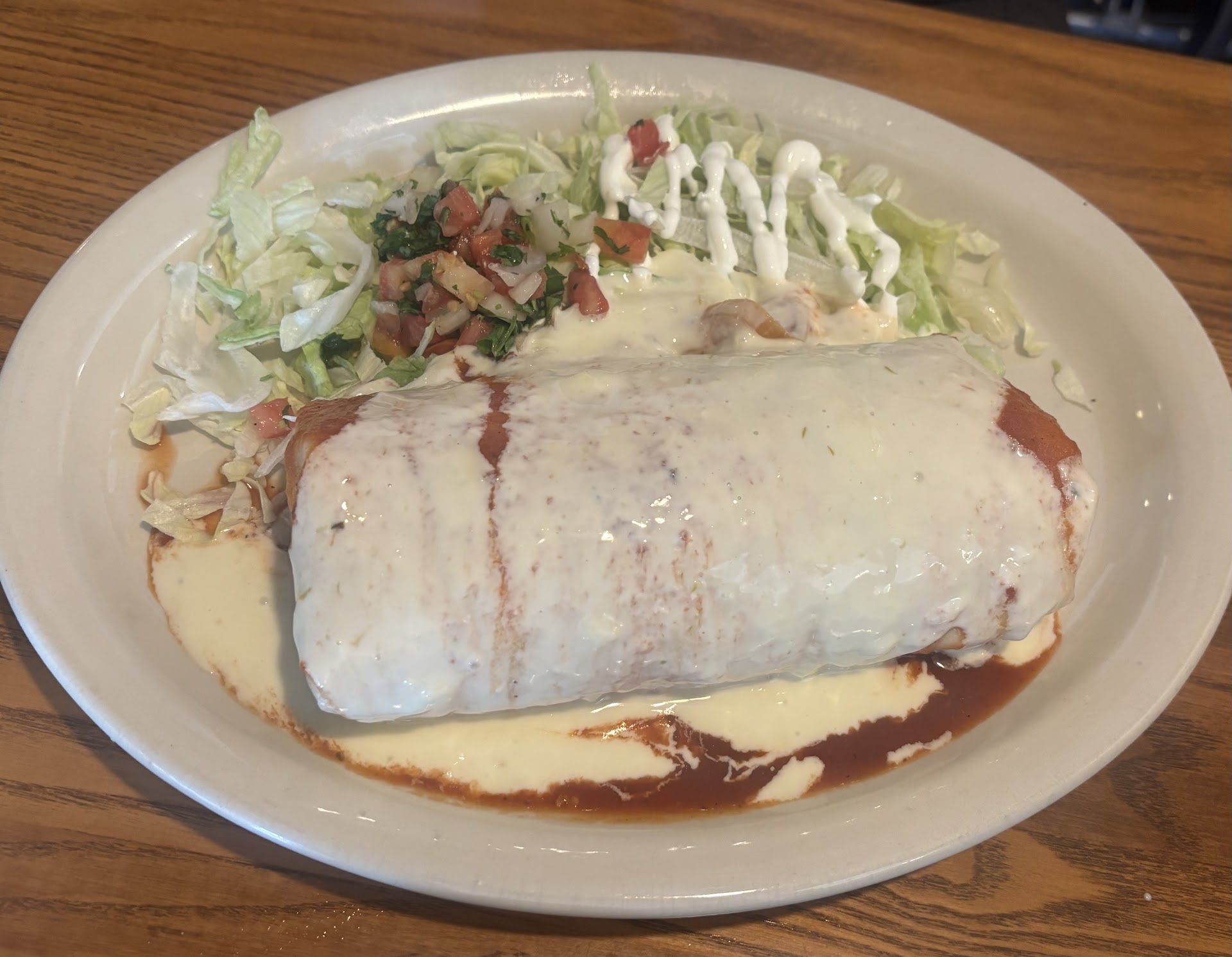 My husband ordered the Señor Burrito with chicken and it was massive & delicious, covered in burrito & cheese sauce and served with a large side lettuce salad with pico de gallo. I ordered the chicken enchiladas verdes with excellent verde sauce & served with a large helping of rice, beans, and lettuce & tomato side salad drizzled with sour cream. If I’m being insanely nitpicky, the shredded chicken could’ve been a tad more tender, but that honestly is the only fault that I could find. The servers were also efficient and pleasant. Outstanding experience all around that left me wishing I didn’t live over 2 hours away! If we were closer, we’d definitely replace our local go-to Mexican place with...