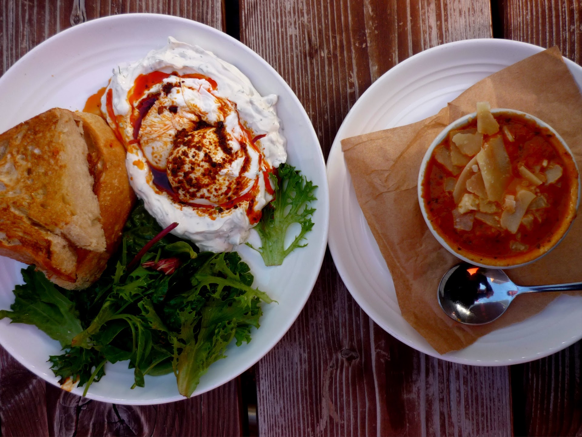 My couple suggestions: maybe doing a few things à la carte or a basic-ish dish, the menu is great but def foody geared…the area def warrants a few basic items. Maybe laminate the menus, and mention checking daily pastry and coffee specials, and better signage in front because all you see is the ugly yoga awning. OH, and ask people if they are sitting inside or out, so you can have people wait at their tables and staff can call order names inside and outside as well. This will help avoid congesting area near counter and entry!